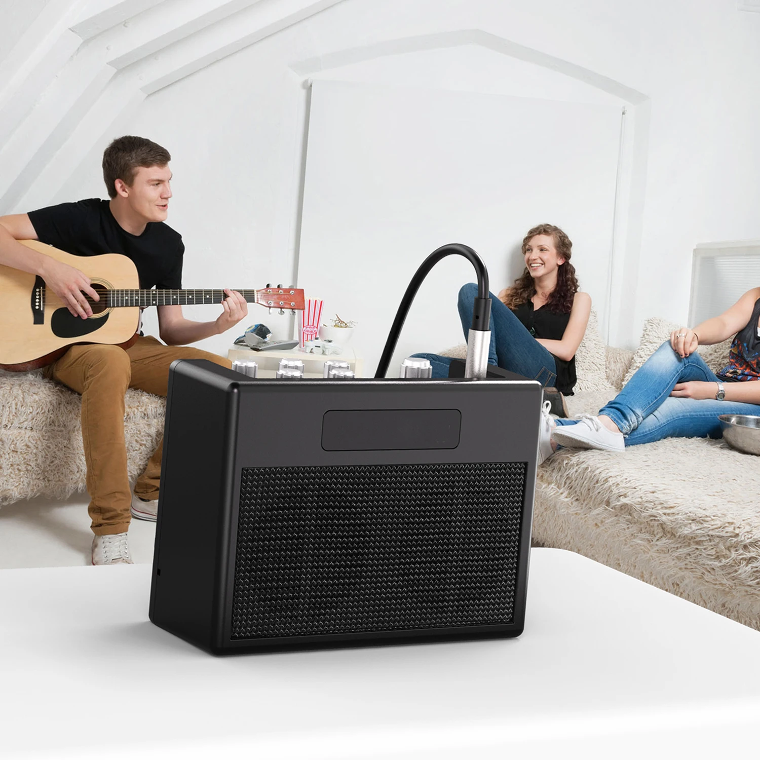 Equipado con altavoces duales de 3 "en el interior, que ofrecen tonos verdaderos y sonidos potentes. Perfecto para practicar con guitarra, actuaciones callejeras, karaoke con amigos, actuaciones de banda, juegos al aire libre, etc.