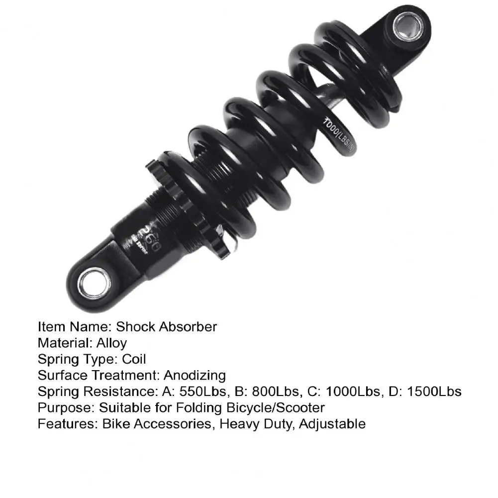 Amortiguador de resorte para bicicleta de montaña de 12,5/15CM, 550/850/1000/1500Lbs, amortiguador de suspensión trasera plegable para patinete ajustable