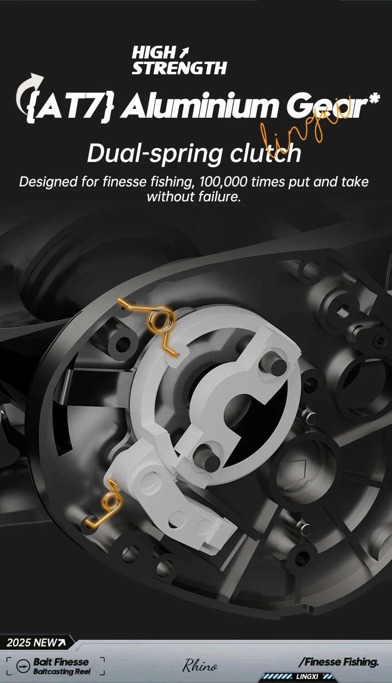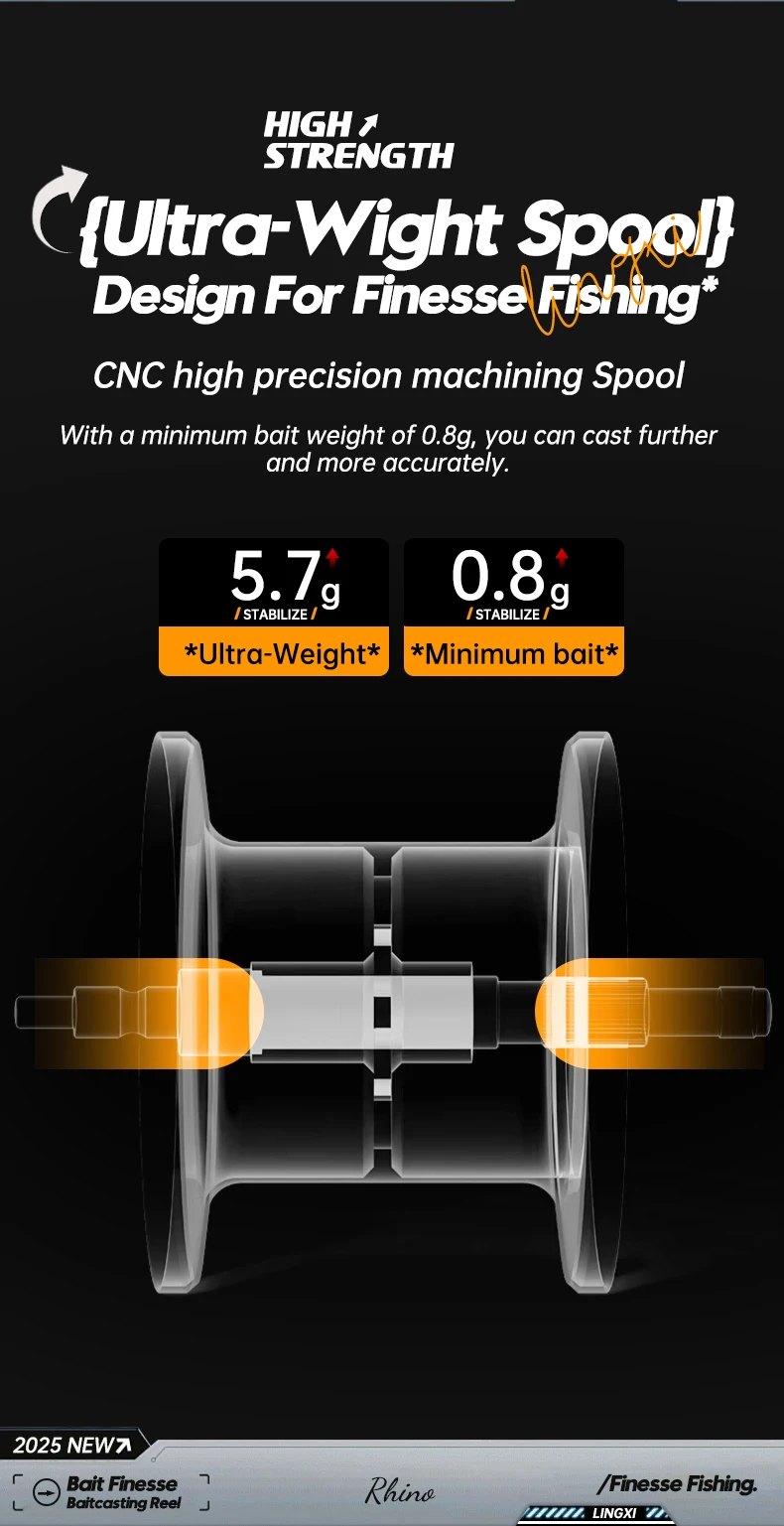 2.Diseño compacto: SilverRhino ha sido diseñado y depurado durante un año, un diseño más compacto puede extender la vida útil del producto, el engrane y la transmisión del engranaje son más suaves y no hacen ruido, el espacio más pequeño significa que no se atasca el hilo de pescar, en general es un carrete de baitcasting que puede satisfacer todas sus demandas y es cómodo incluso después de miles de lanzamientos durante un día de pesca.