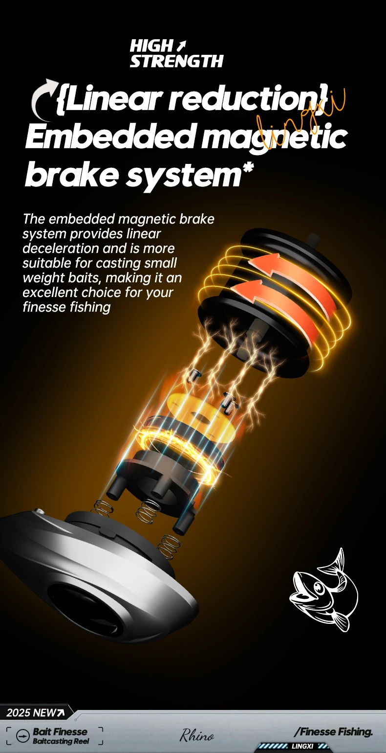 2. Para el primer uso, ajuste la fuerza de frenado a un máximo de 10 niveles para evitar el juego del hilo de pescar. Luego ajuste gradualmente el nivel de acuerdo con el peso del cebo para lograr la distancia de lanzamiento más lejana.