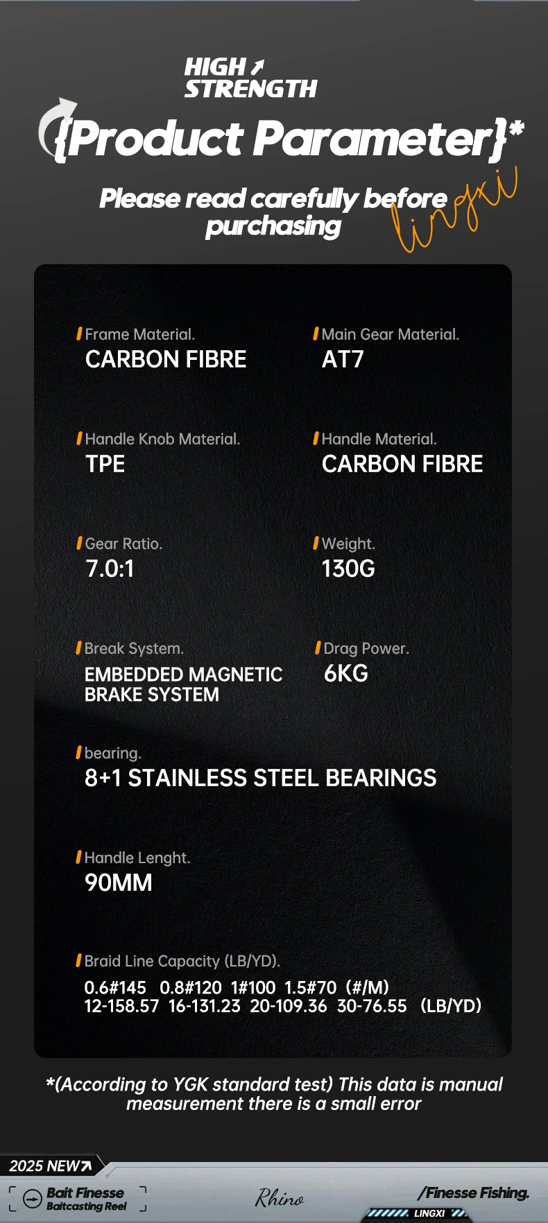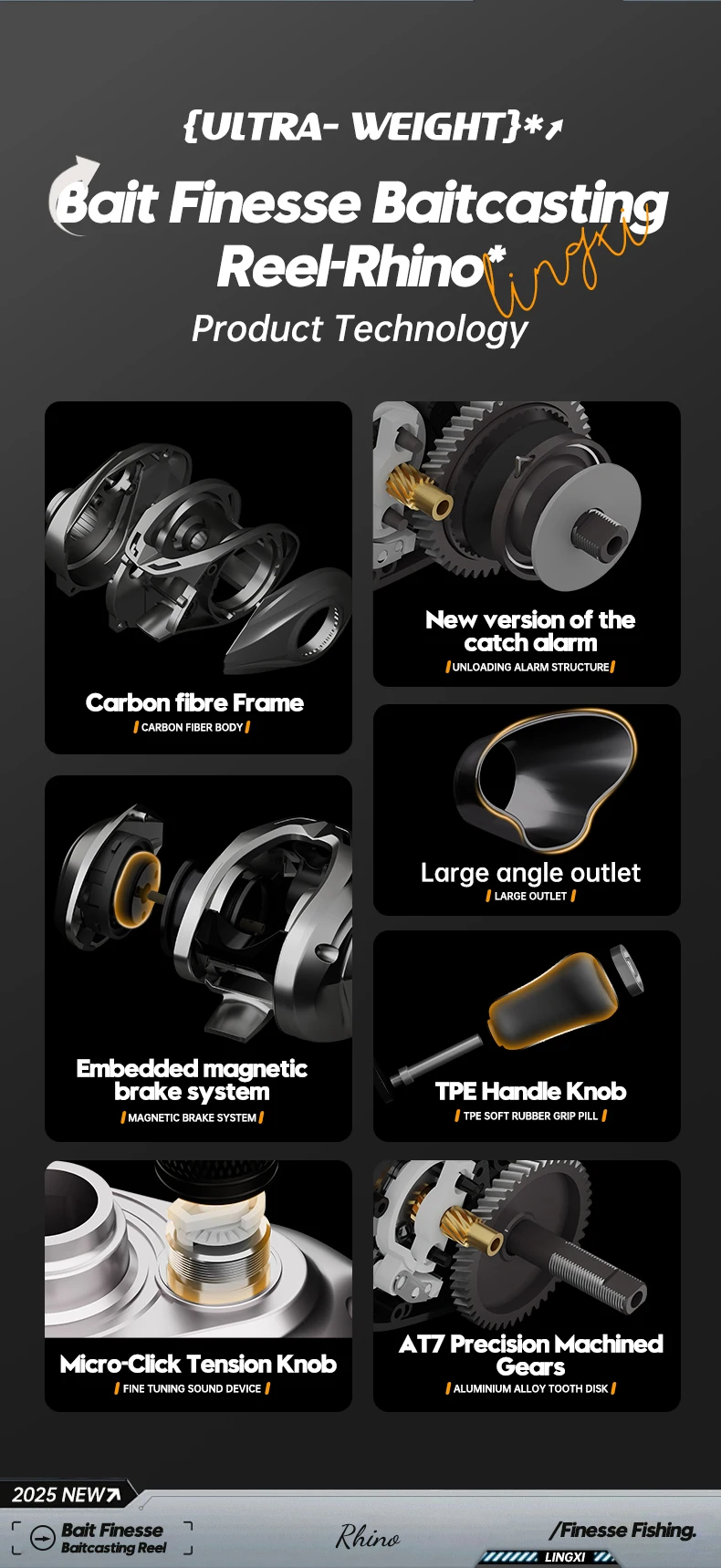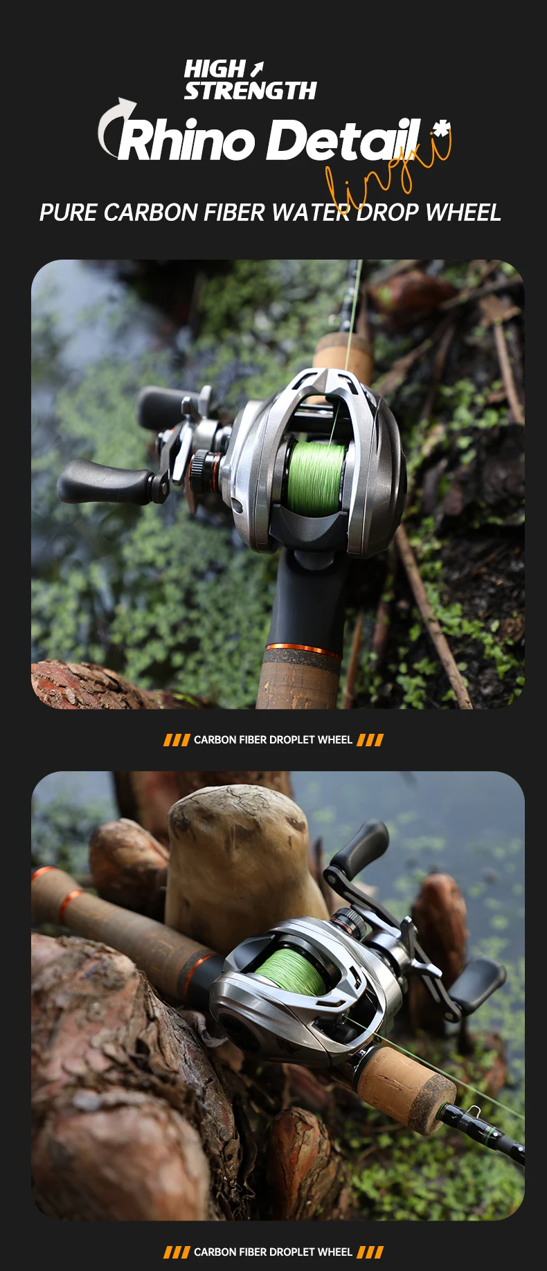 1.Excelente durabilidad y marco de carbono ultraligero con engranaje principal de aluminio importado de Alemania, no es fácil de oxidar, garantizamos una excelente durabilidad con una mano y nos esforzamos por reducir el peso del carrete a 130 g con 5.Carrete poco profundo de 7 g, pescador gama con una sensación de lanzamiento extremadamente cómoda.El tamaño del carrete de baitcasting SilverRhino es pequeño, puede sostenerlo fácilmente y llevarlo en su viaje de pesca, que nunca será su carga.