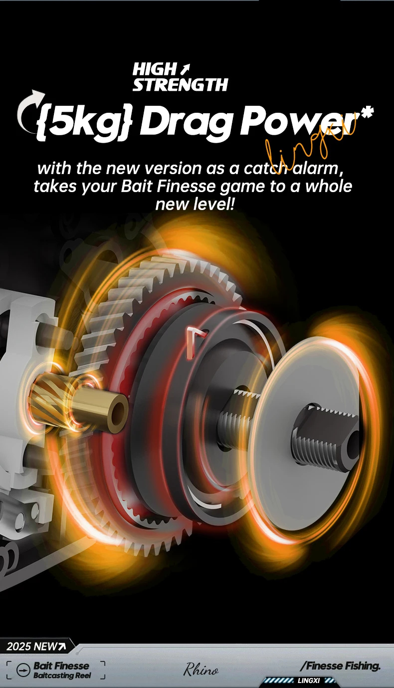4.Innovador kit de sonido Drag Clicker: al igual que muchos otros de nuestros productos, también hemos instalado un kit de desplazamiento en el cuerpo pequeño de SilverRhino, que es muy raro para ver en otras marcas de carretes de pesca, el kit hace que el carrete de lanzamiento se alarma automáticamente "dadada" sonido cuando los peces muerden el señuelo, lo ayuda a detectar cada señal de mordida de peces sin importar cuán pequeña sea la señal, aumenta la posibilidad de perder peces.