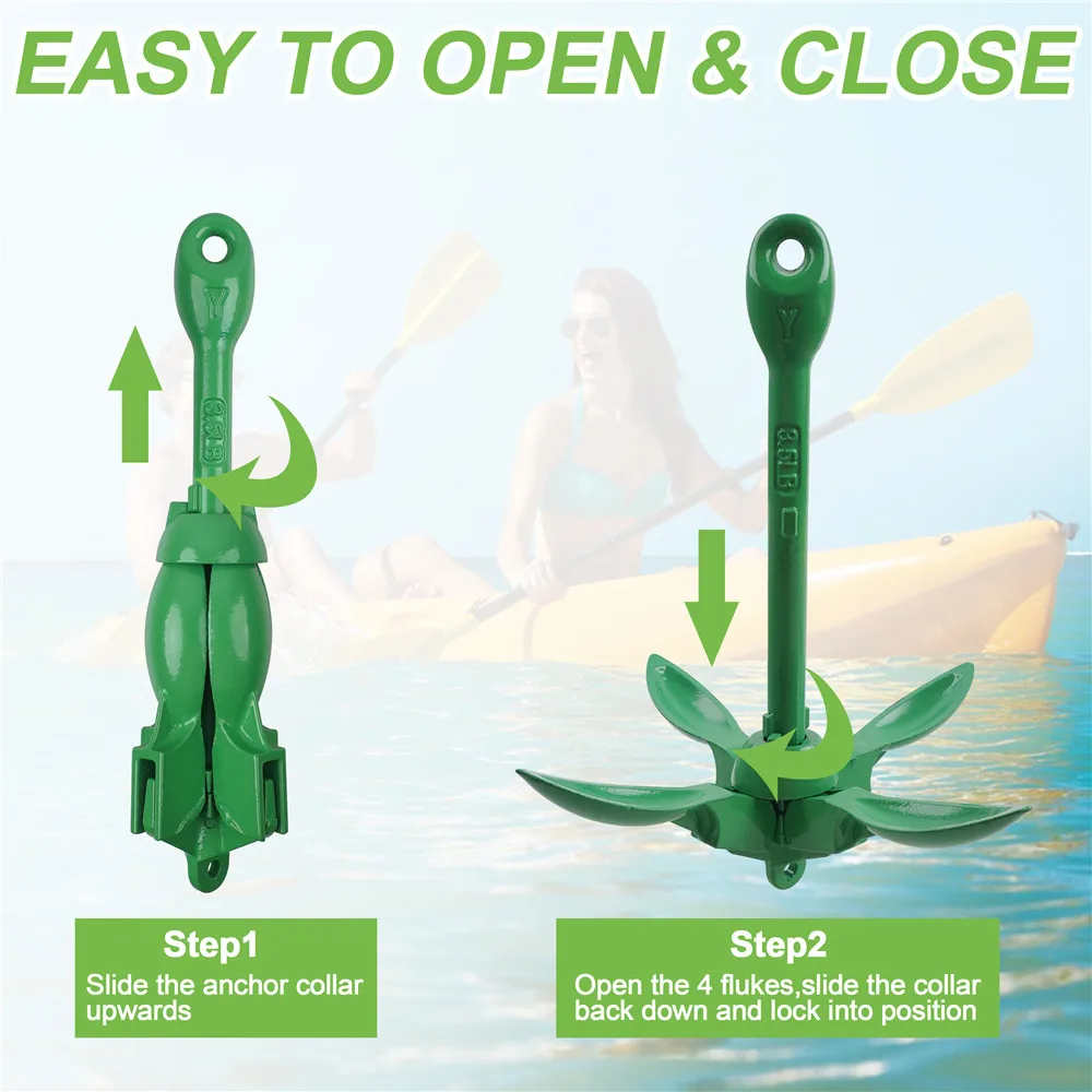 3. The anchor is foldable and its compact size makes it easy to store and easy to carry. With four handles, ideal for kayak and Jet ski anchor, but also for Paddle Board, Pontoon boat, PWC, SUP, Canoe anchor
