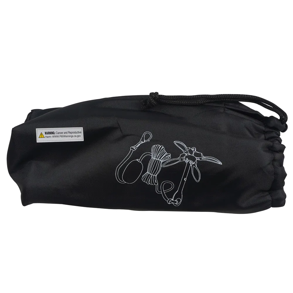 2. Simply slide the grappling anchor collar upwards, fold open the 4 flukes, slide the collar back down, and lock into position. Use as much anchor rope as possible to create better horizontal drag on the bottom surface of ponds, rivers, lakes or oceans.