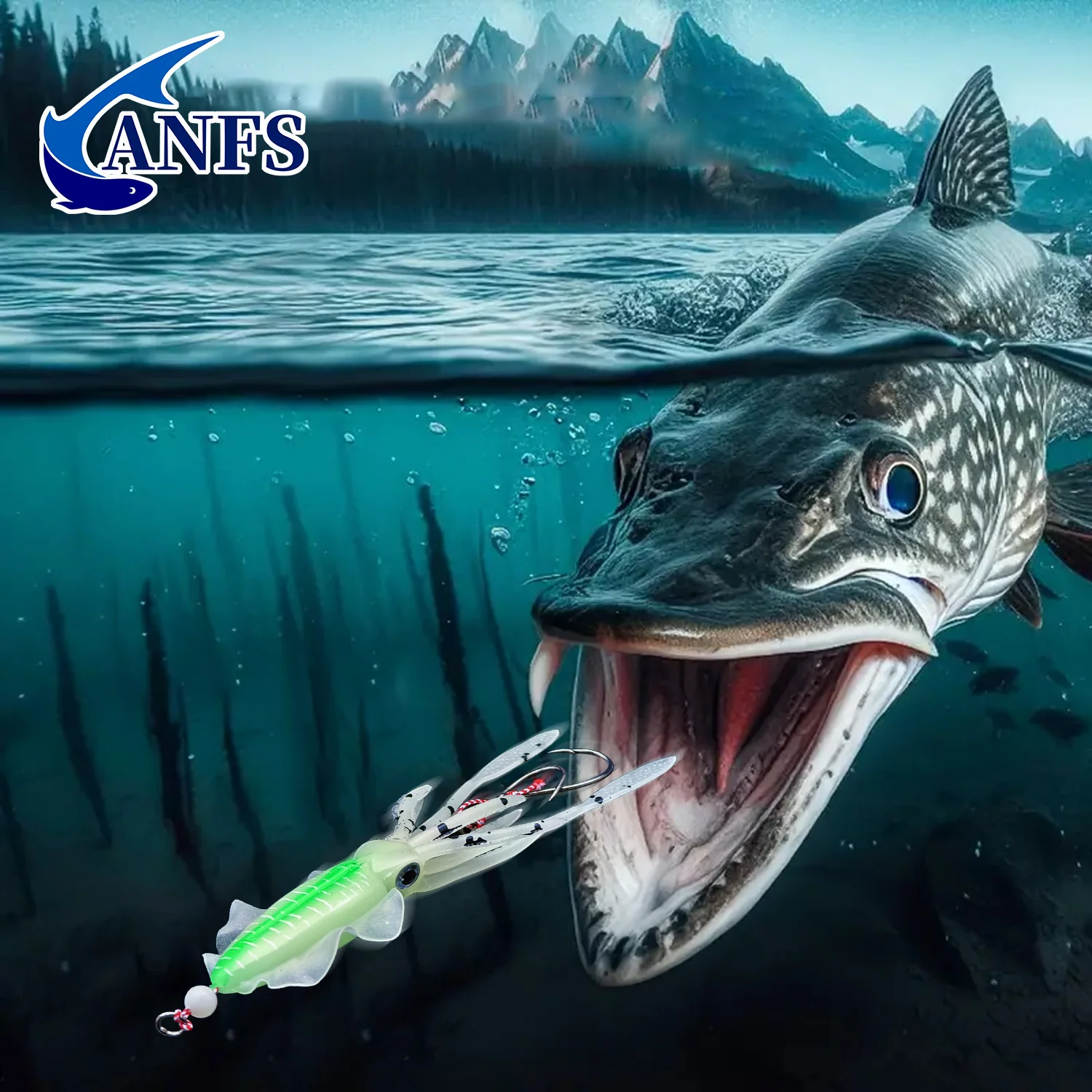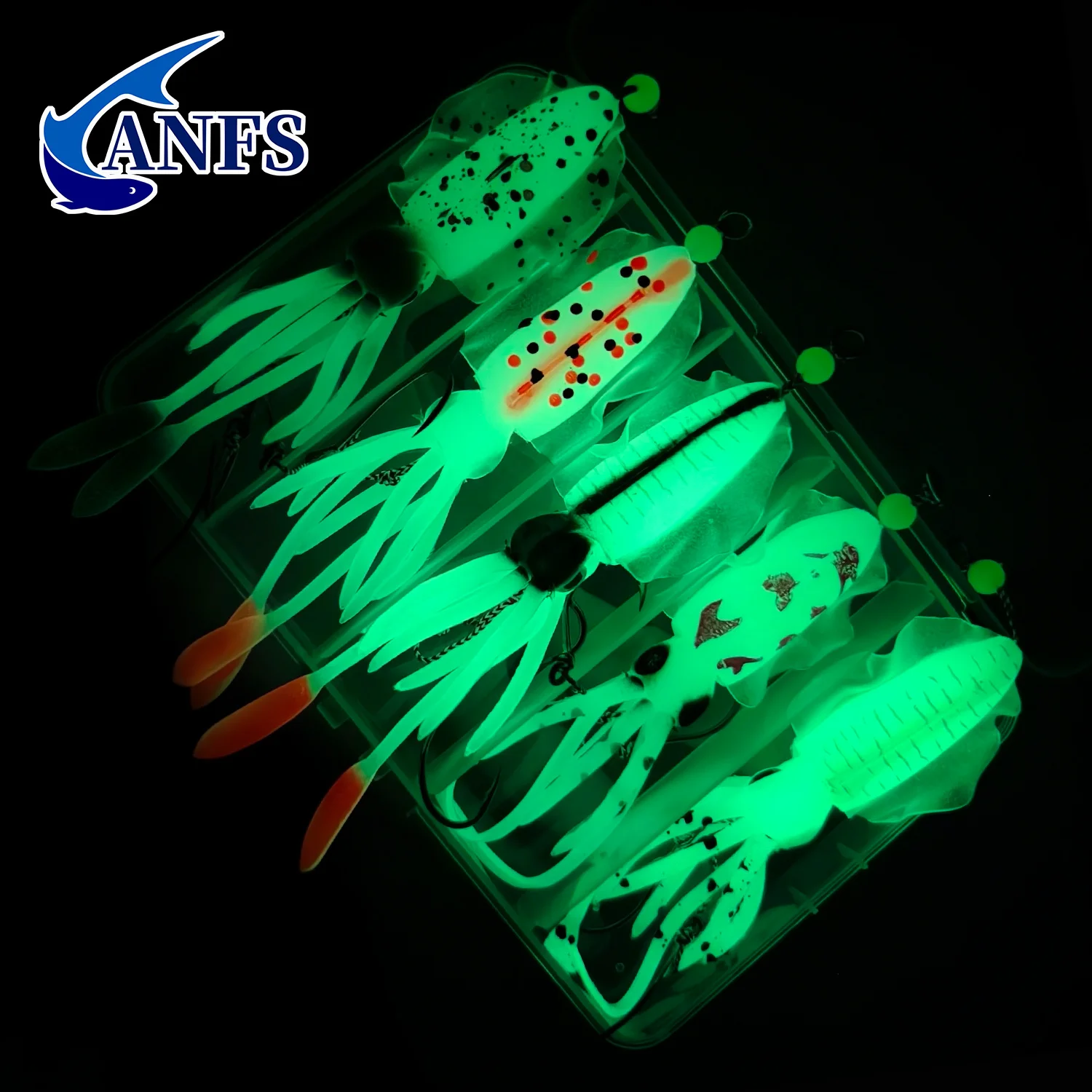 1) DISEÑO PREMIUM QUADRADO: forma de calamar y acción de natación que brilla en la oscuridad para una mayor tasa de captura y una experiencia de pesca efectiva.
