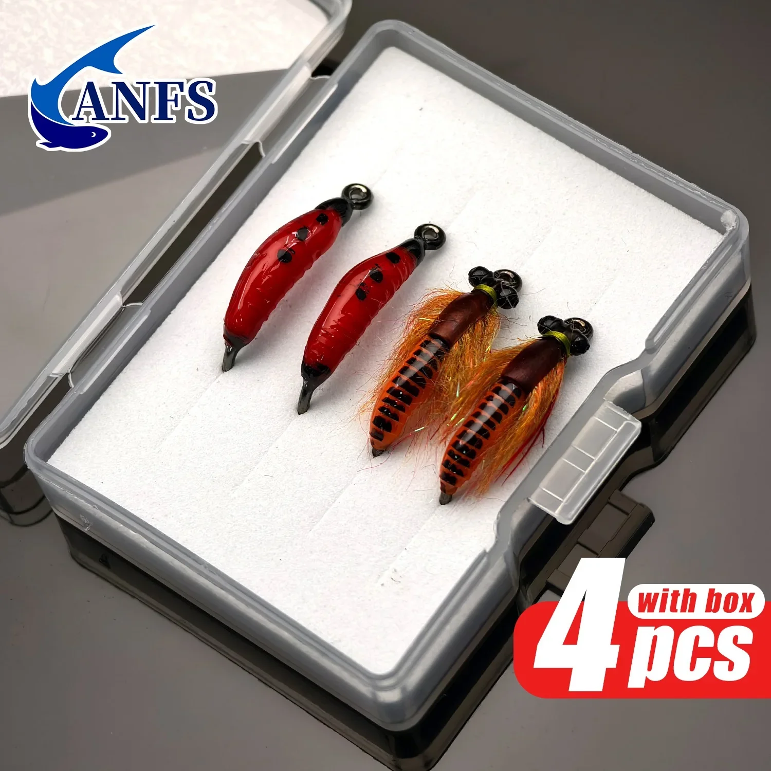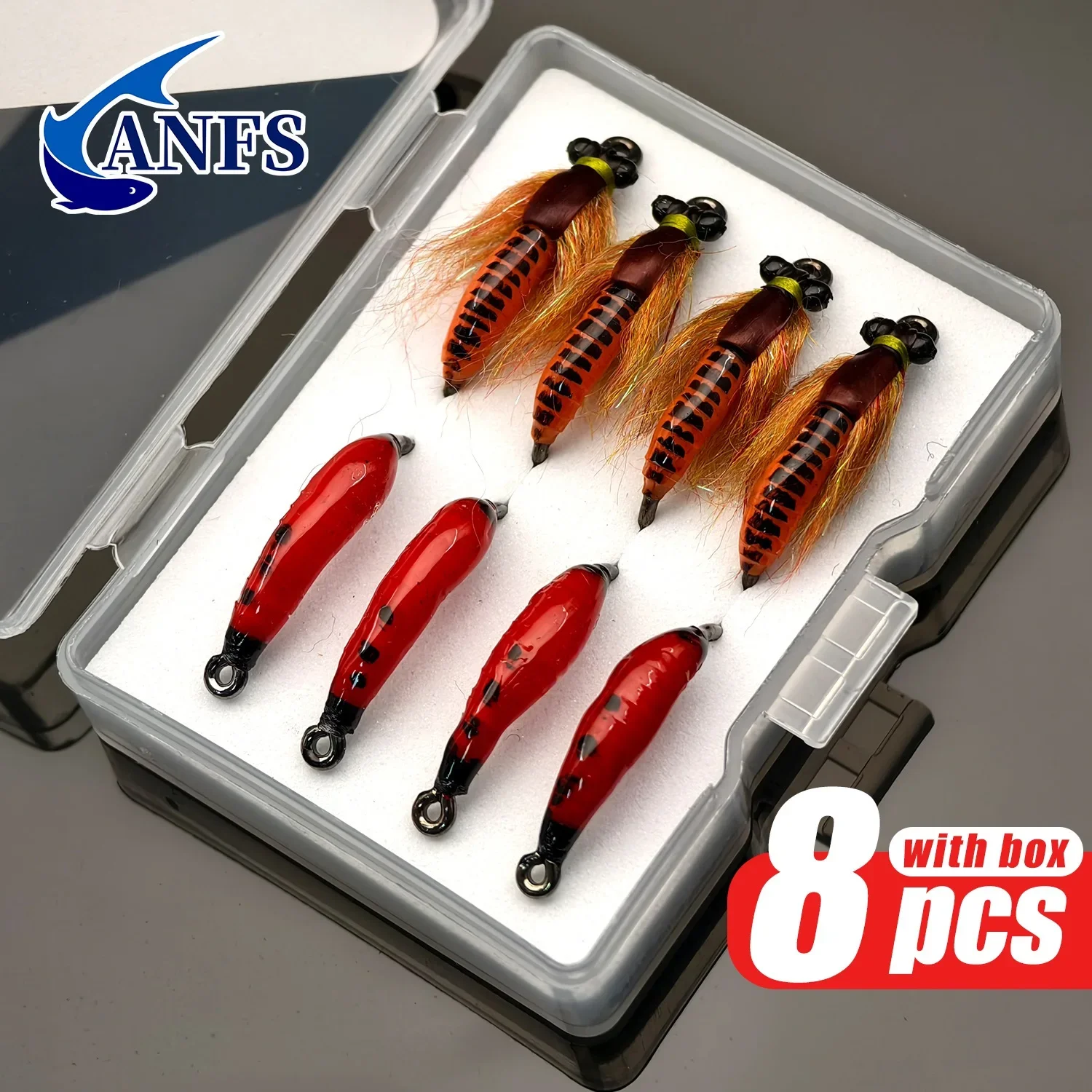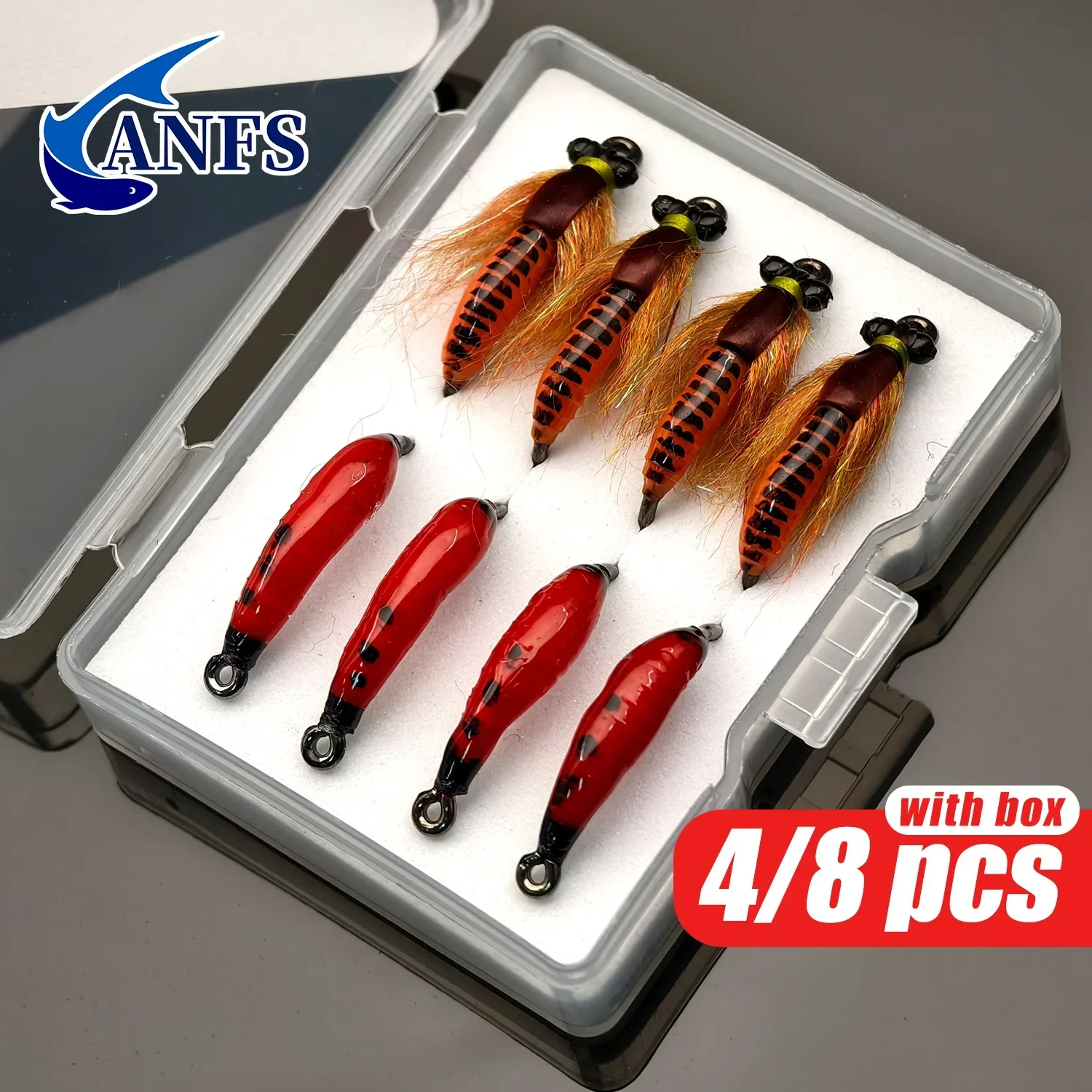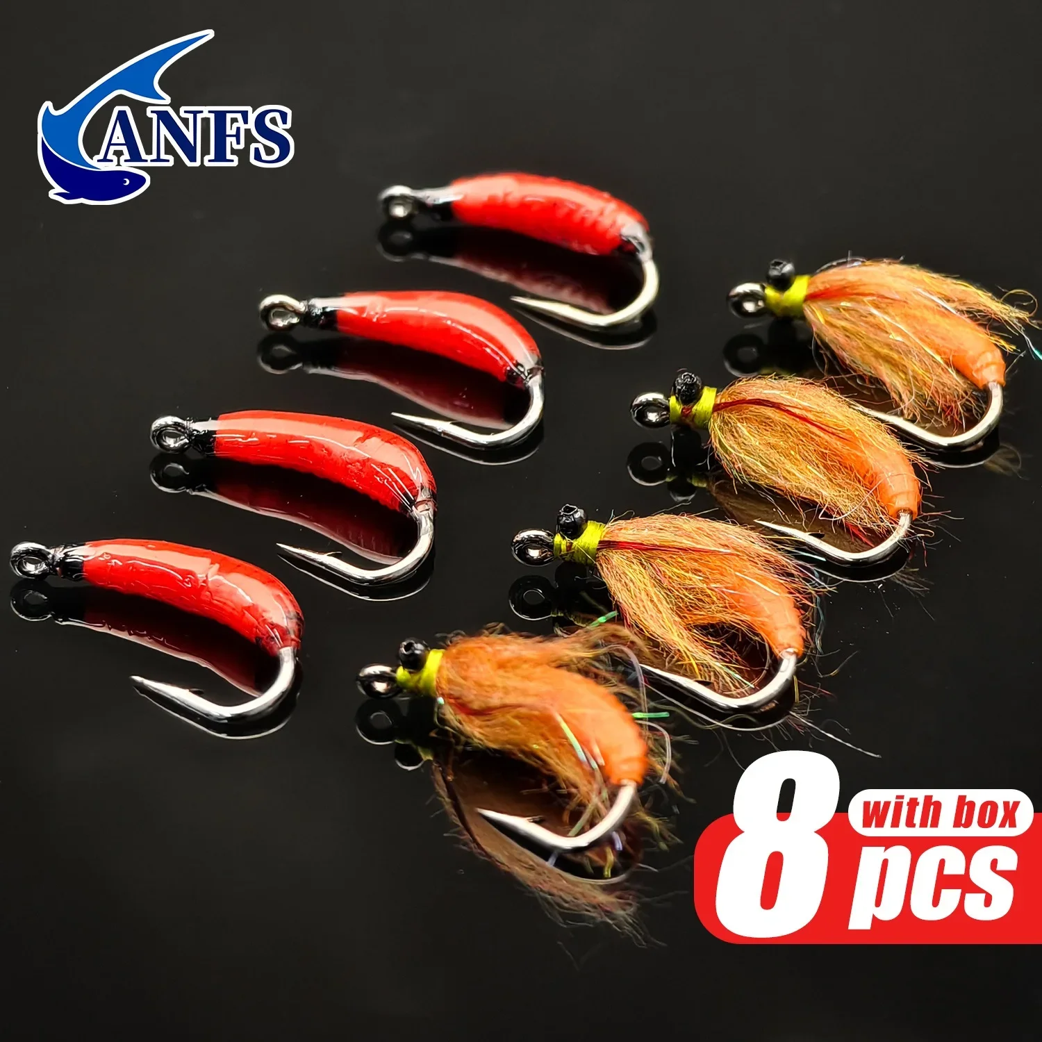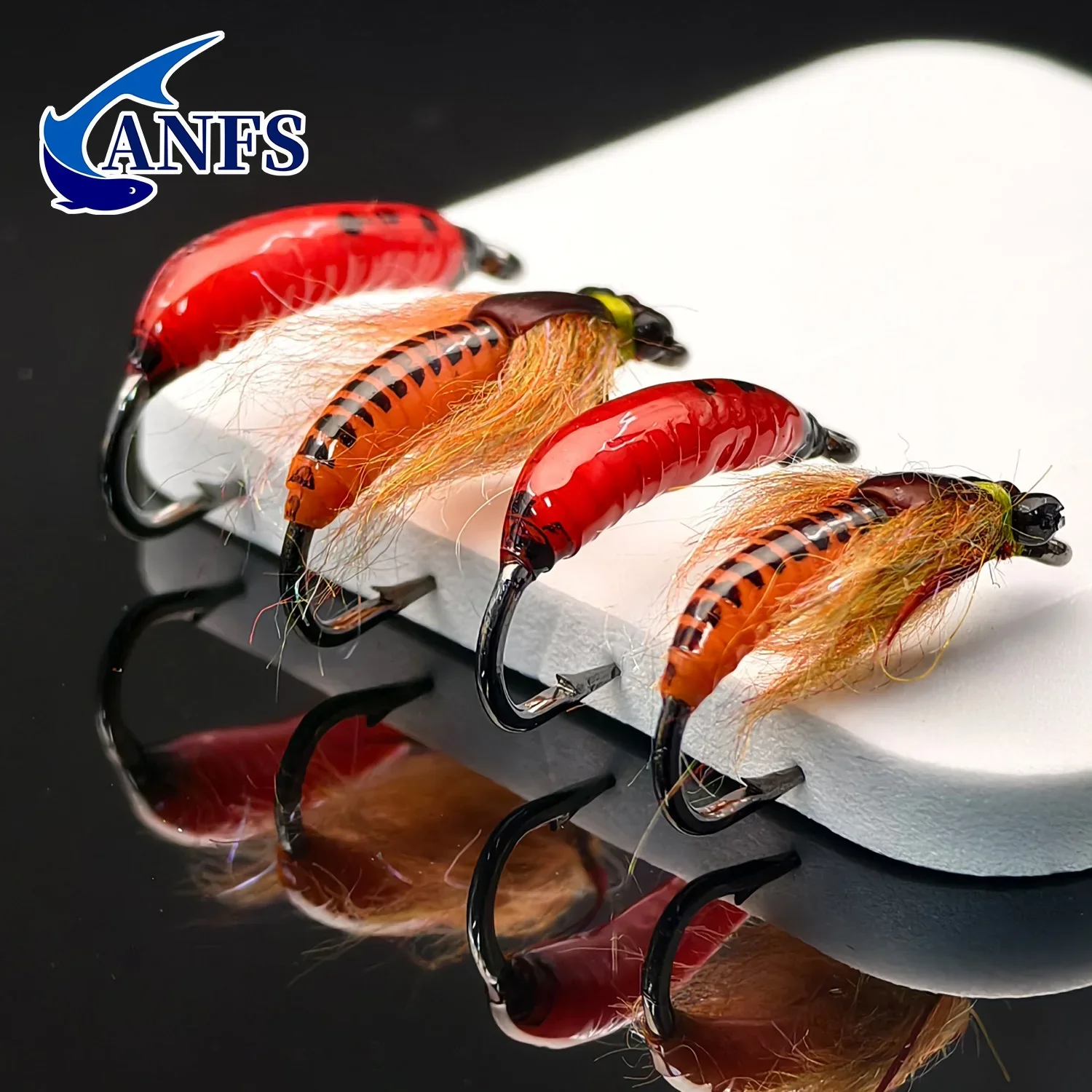 ANFS 4 uds/8 Uds. Señuelos de pesca con mosca de gusano Scud de rayón, cebos artificiales de larvas de Caddis para trucha y Grayling, cebos de pesca con mosca