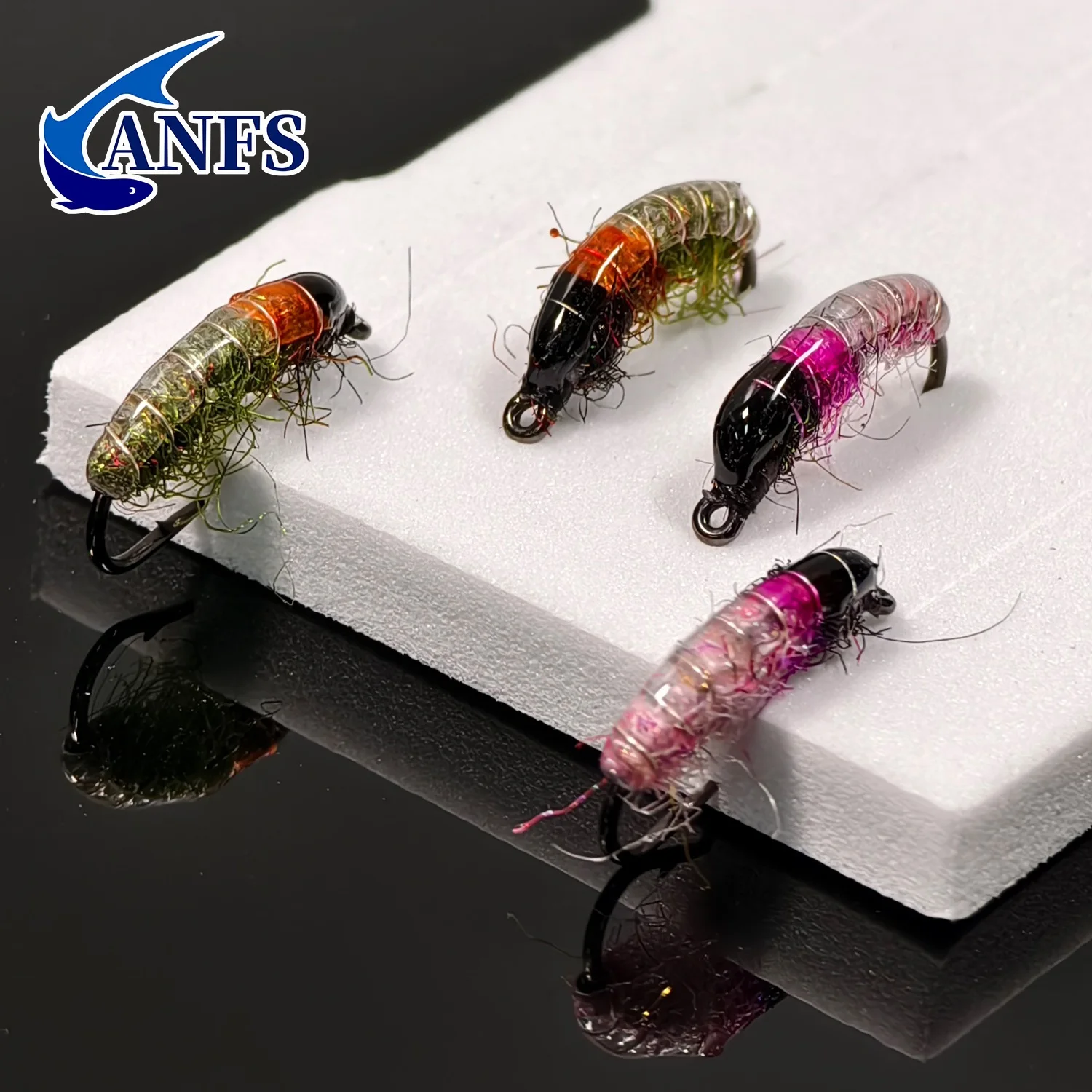 ANFS 4pcs/8pcs Colores surtidos Señuelos de pesca con mosca Premium Checa Ninfas y Scud - Ideal para trucha, lubina, Bluegill en agua dulce