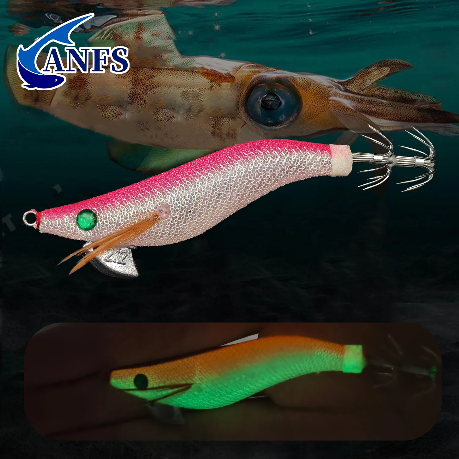 ANFS 5 plantillas de calamar con bolsa de almacenamiento: cebo luminoso con anzuelo de calamar para pesca en el mar, increíble regalo de pesca para pescador