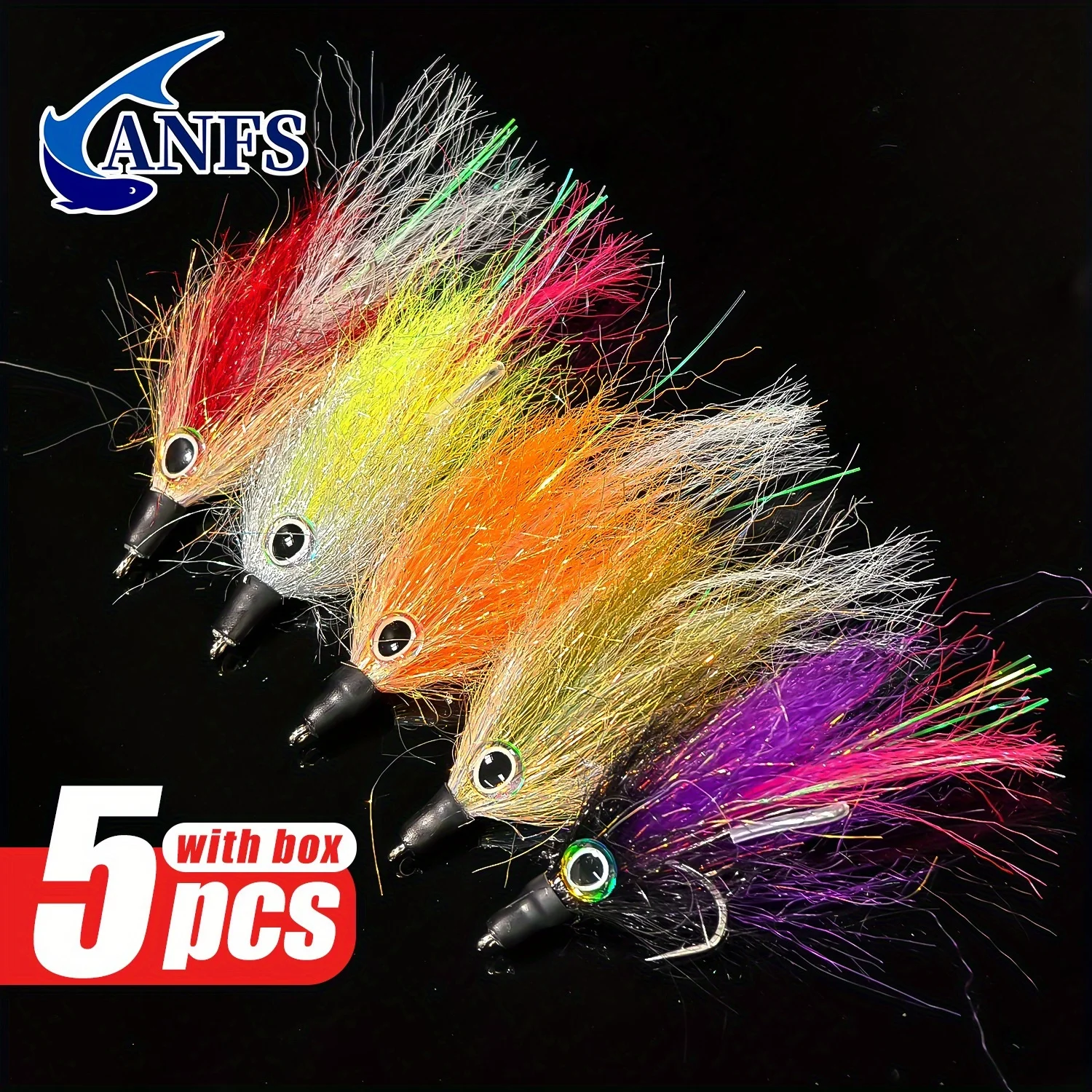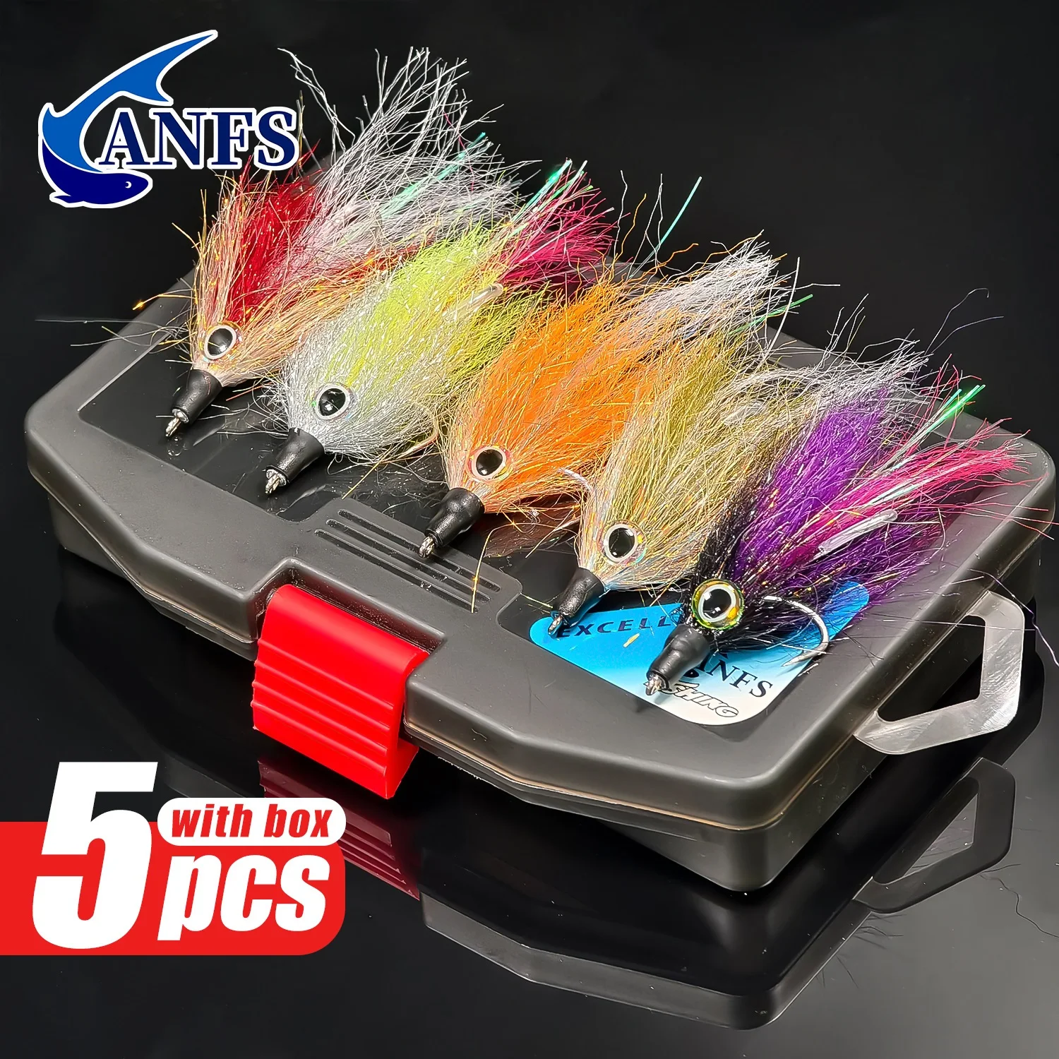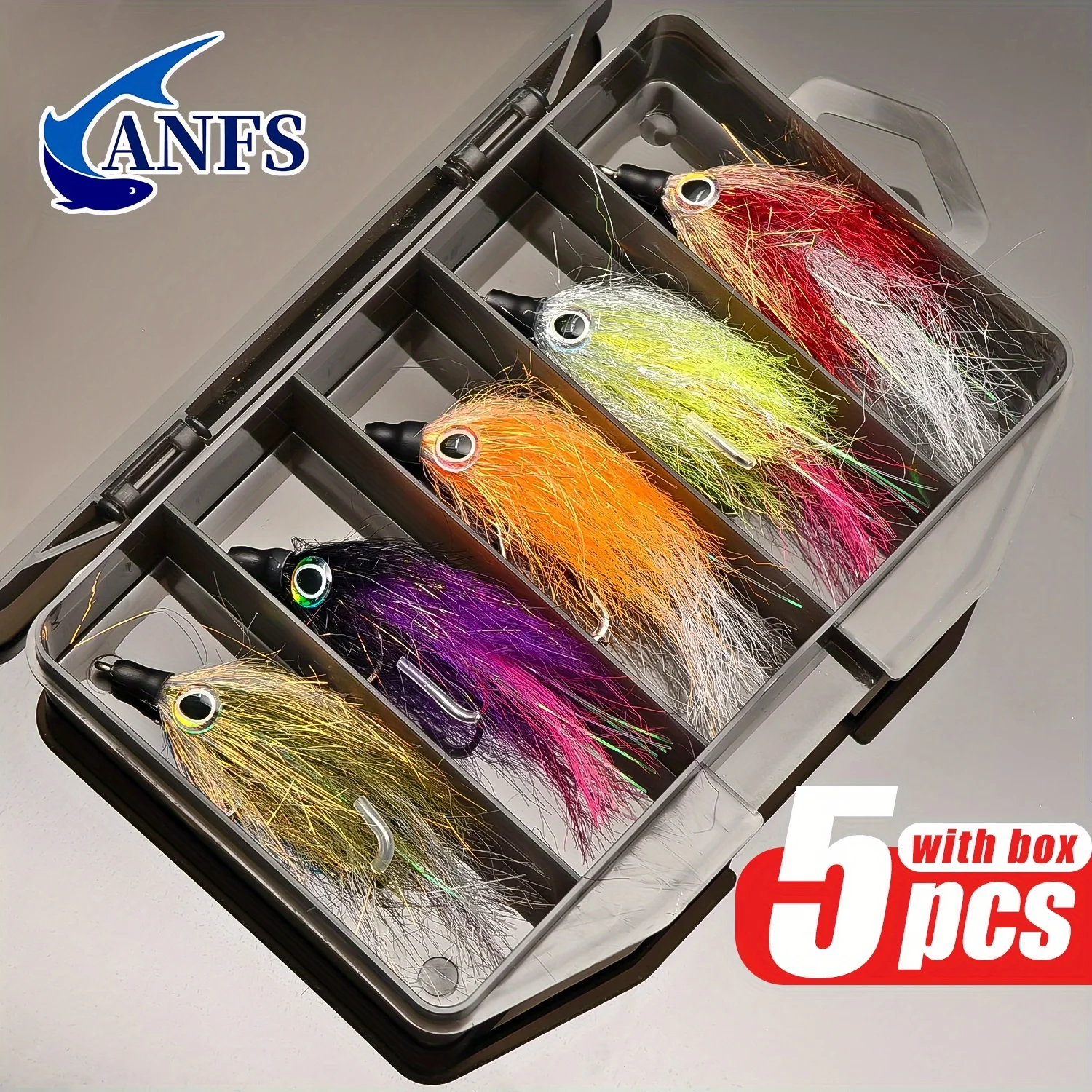 ANFS 5 uds Kit de pesca con mosca Streamer de agua salada Premium para lubina, Lucio, Muskie y trucha incluye caja de almacenamiento