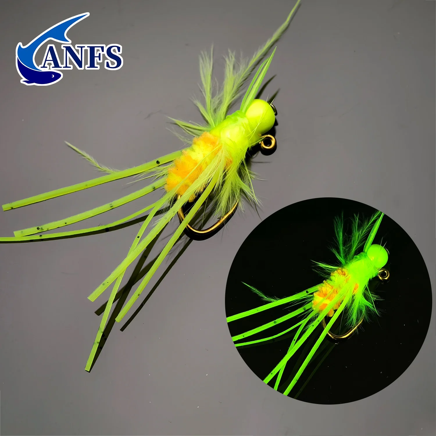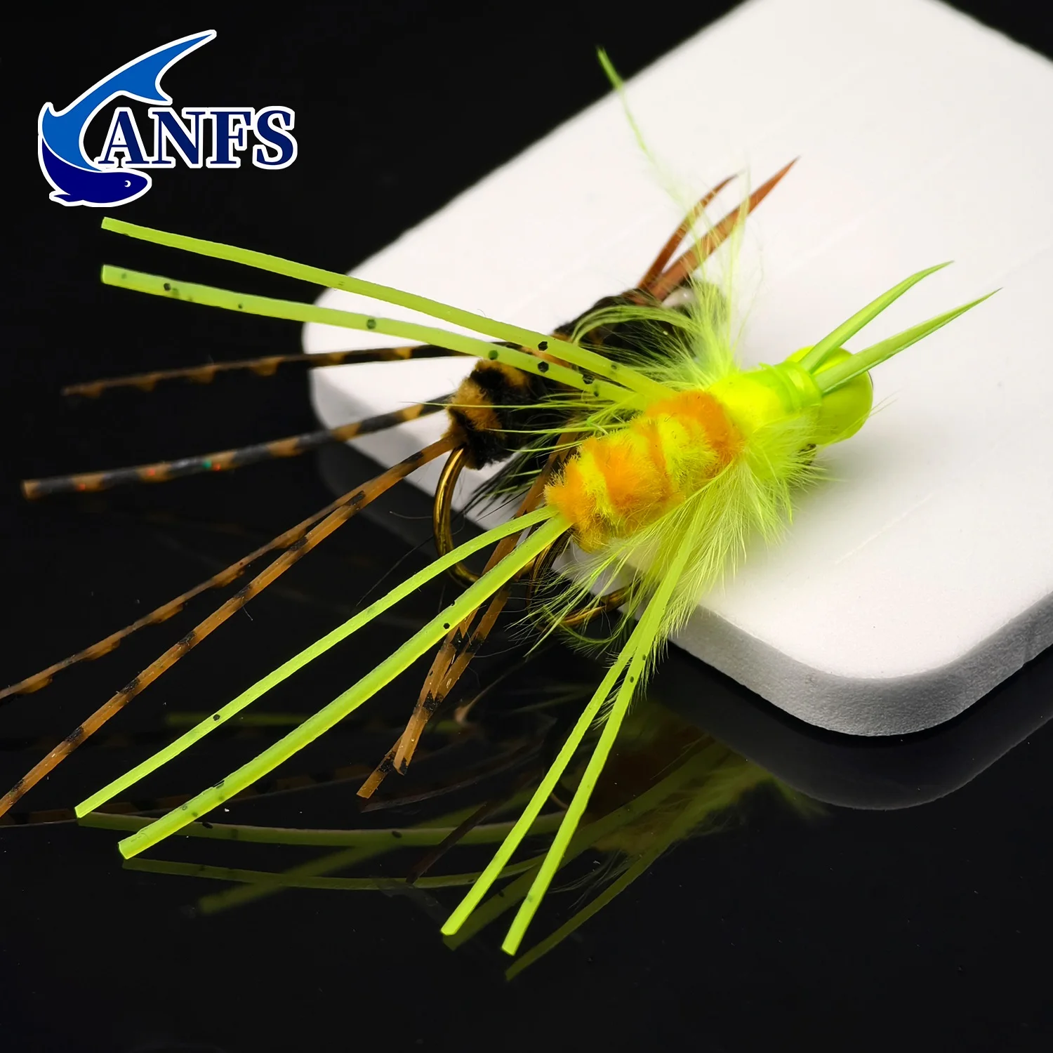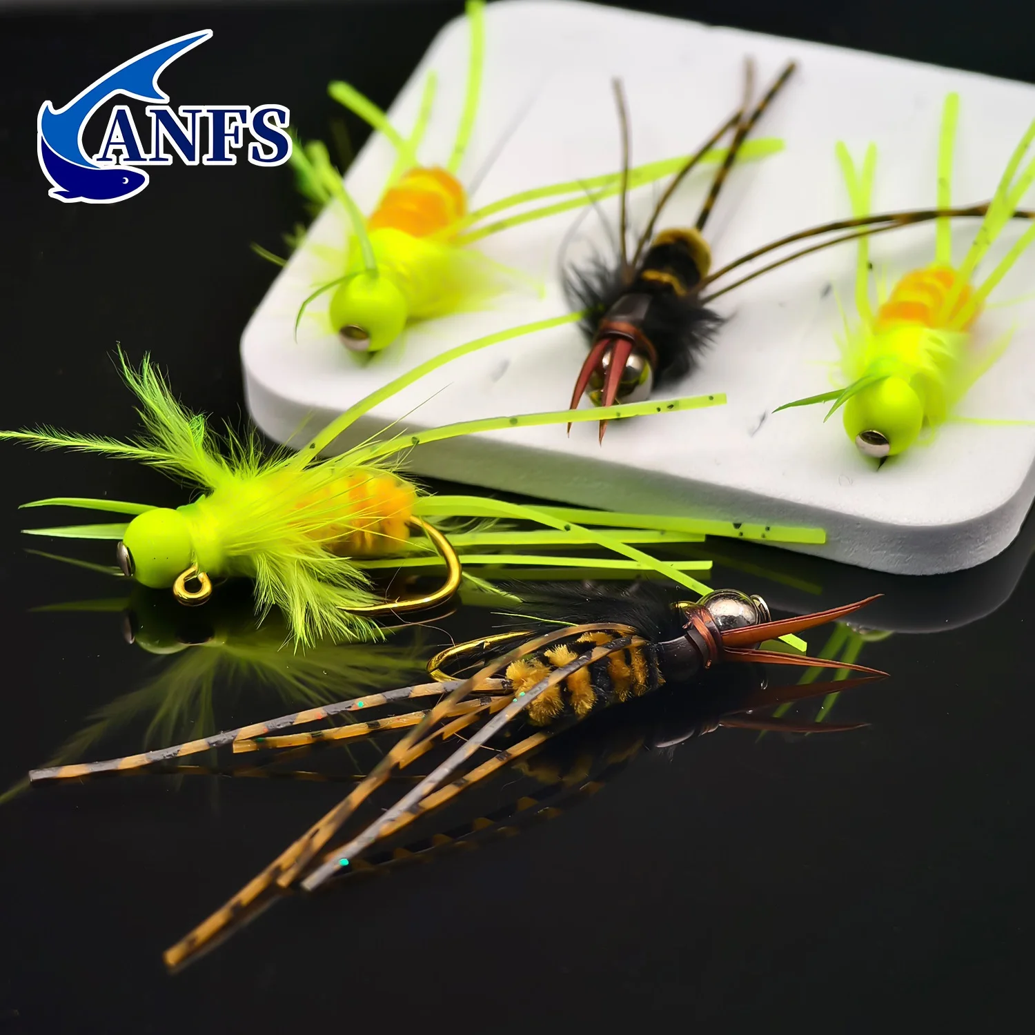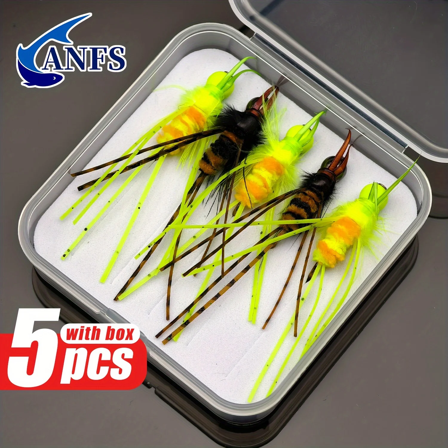 ANFS 5 unids/caja cabeza de cuentas de latón plantilla ninfa piernas de goma plantilla Stonefly púas atado de moscas para trucha perca Grayling Señuelos de Pesca