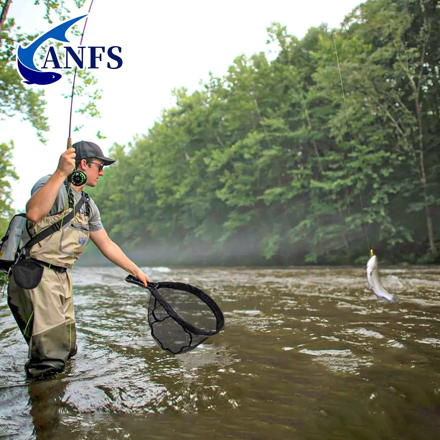 ANFS Red de aterrizaje de pesca, Red de aterrizaje plegable para trucha, Red de trucha de malla recubierta de goma con bolsa de aparejos para trucha y lubina
