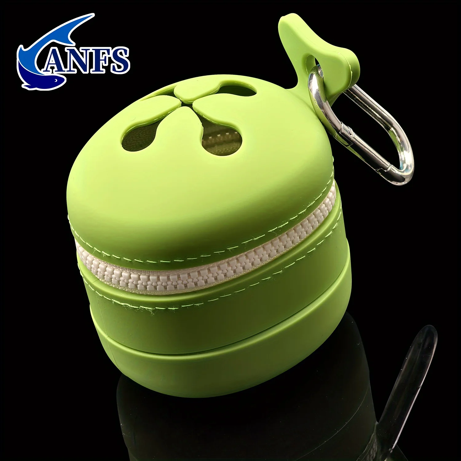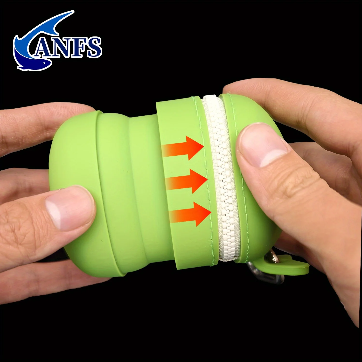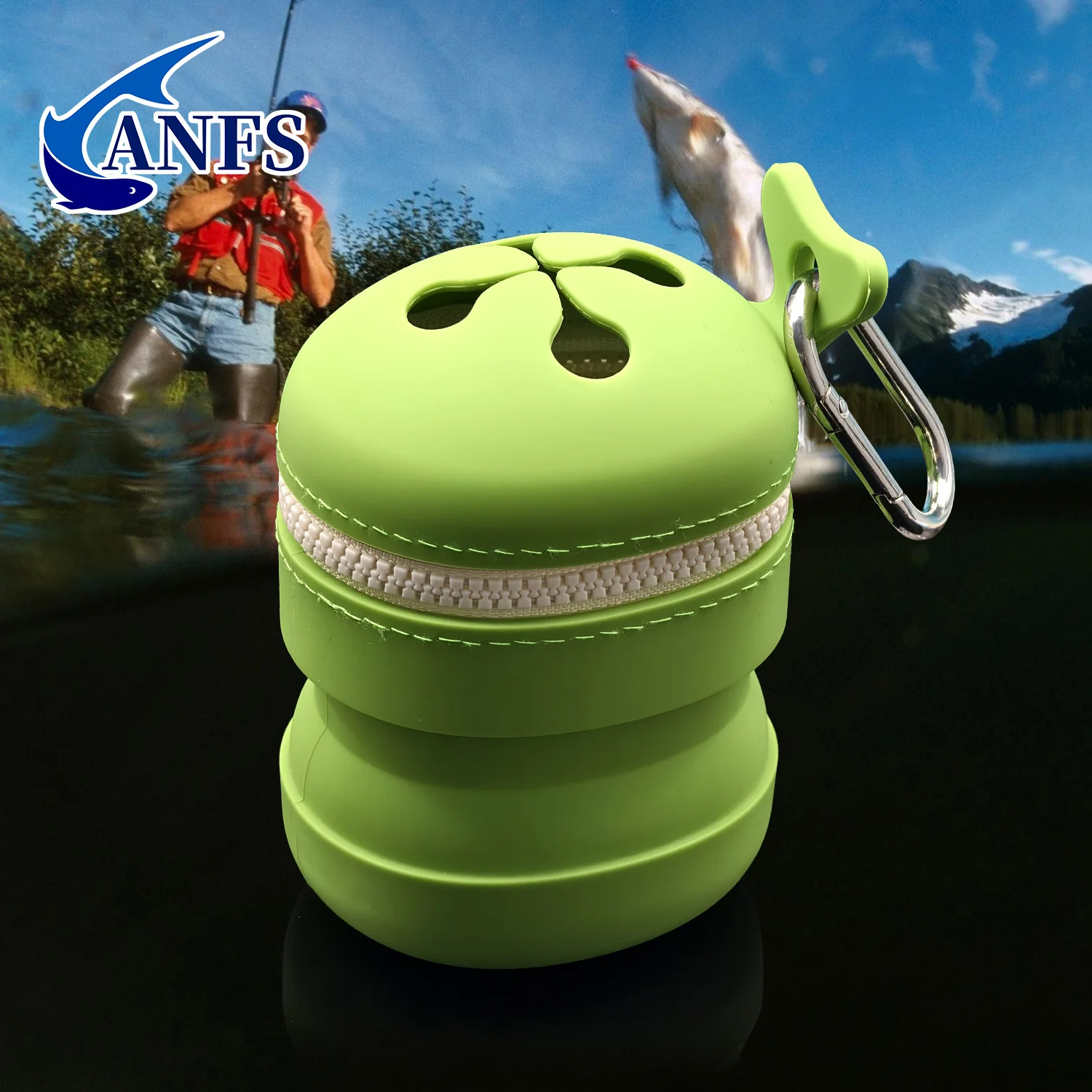 ANFS1pc Mini cubo de basura de silicona para pesca con mosca, caja de almacenamiento de residuos plegable con cremallera para ríos, lagos, arroyos y océanos