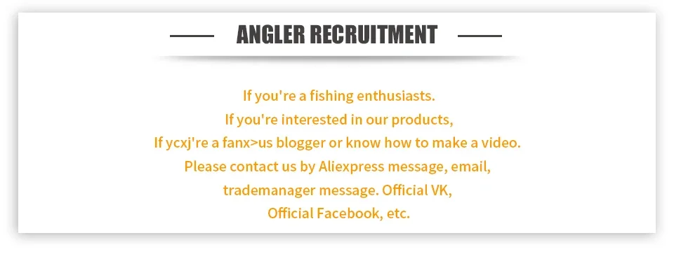 If you have any problems with your order(i.e.late delivery,product not as described, you can contact us by sending messages in My Aliexpress.We will offer a sollution.We wish you a pleasant fishing experience.