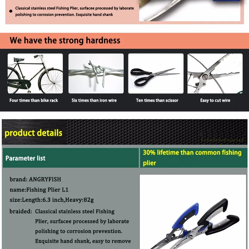 ANGRYFISH-Alicates de pesca de acero, tijeras, cortador de línea L1, Color negro, aparejos de pesca/herramientas