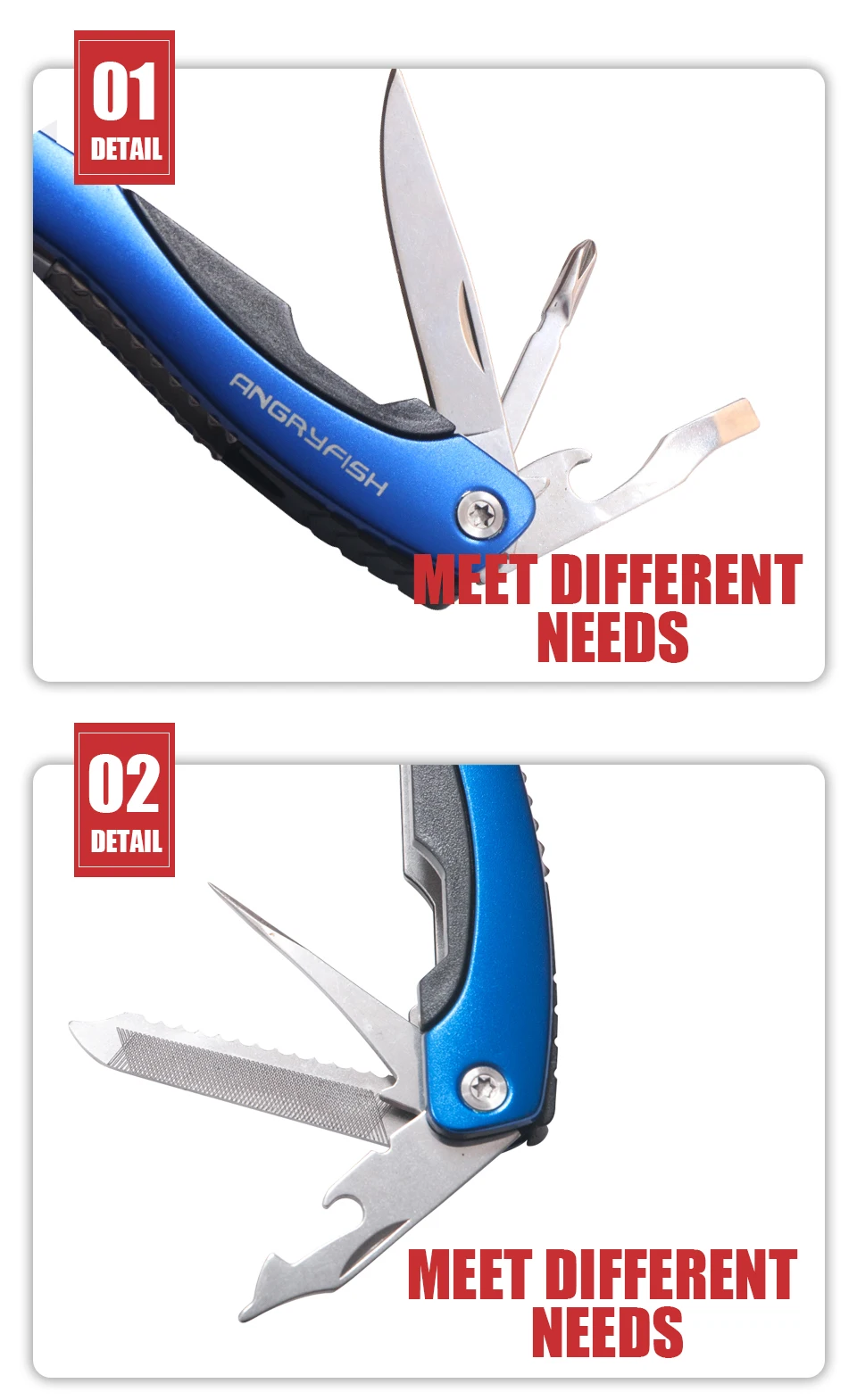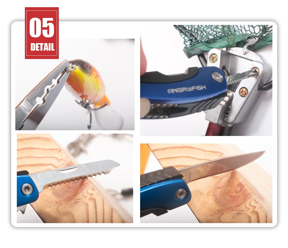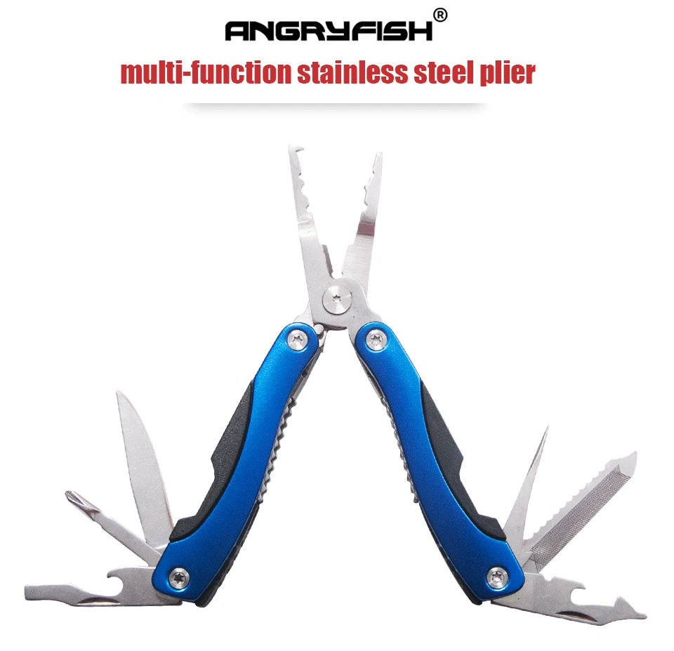 ANGRYFISH-Alicates de pesca multifunción plegables, removedor de anzuelos de pesca, abrazadera de pesca, herramientas de aparejos, azul, L5