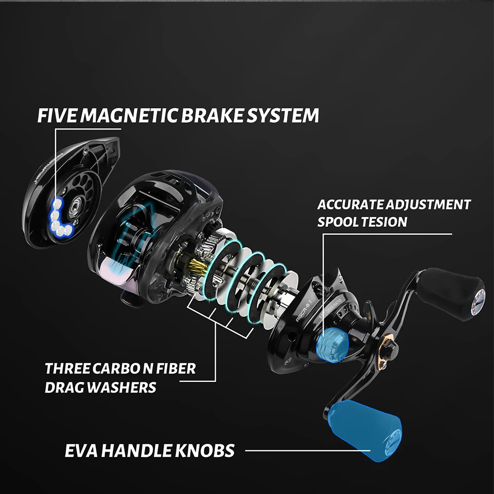 ANGRYFISH-Carretes de pesca de fundición, 7 + 1BB, 6,3: 1, carrete de Metal para Baitcasting derecho/izquierdo, gran oferta
