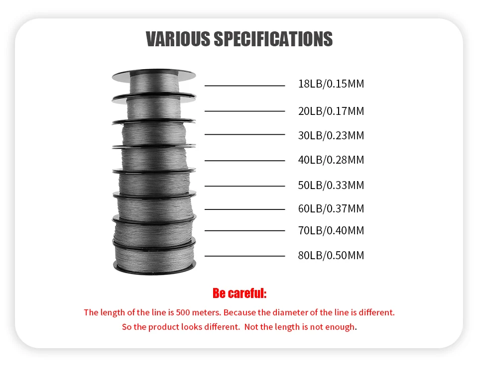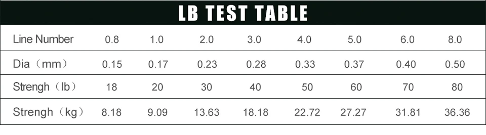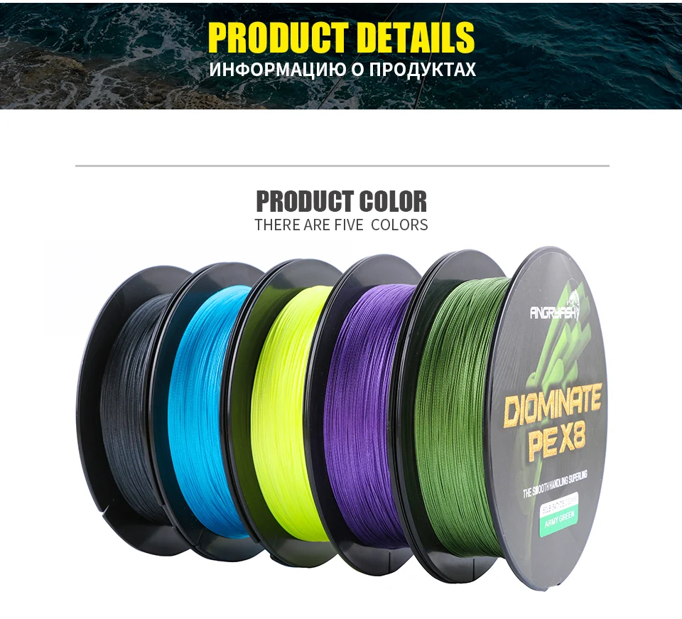 Detalles del producto:Marca: AngryfishMetros: 500M/547YDSForma: NivelMaterial: alambre trenzadoFlotabilidad: flotante5 colores: verde militar, amarillo, azul, negro, moradoParámetros:Número de línea 0,8#: 0,15 mm / 18 lb / 8,18 kgNúmero de línea 1.0#: 0,16 mm / 20 lb / 9,09 kgNúmero de línea 2.0#: 0,23 mm / 30 lb / 13,63 kgNúmero de línea 3.0#: 0,28 mm / 40 lb / 18,18 kgNúmero de línea 4.0#: 0,32 mm / 50 lb / 22,72 kgNúmero de línea 6,0#: 0,40 mm / 60 lb / 27,27 kgNúmero de línea 8.0#: 0,50 mm/70 lb/31,81 kgNúmero de línea 8.0#: 0,50 mm / 80 LB / 36,36 KGLista de paquetes:1 unidad * hilo de pescar