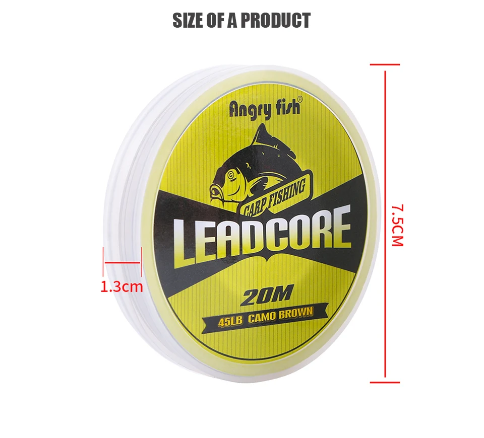 ANGRYFISH-línea de pesca de carpa con núcleo de plomo, 25Lb 35Lb 45Lb 60Lb 20 metros para aparejo de carpa, línea trenzada de hundimiento