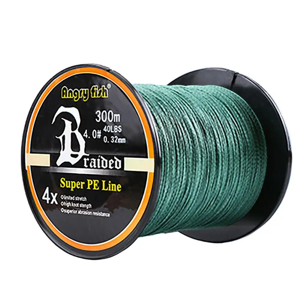 Líneas de pesca Angryfish, 300m, 4 hebras, líneas trenzadas súper fuertes antimordeduras para agua salada/agua dulce