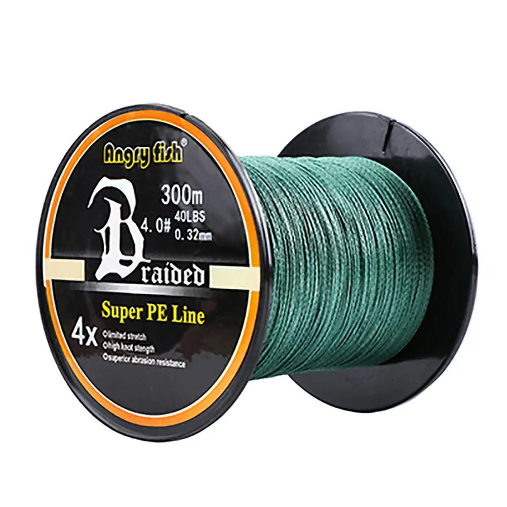 Líneas de pesca Angryfish, 300m, 4 hebras, líneas trenzadas súper fuertes antimordeduras para agua salada/agua dulce