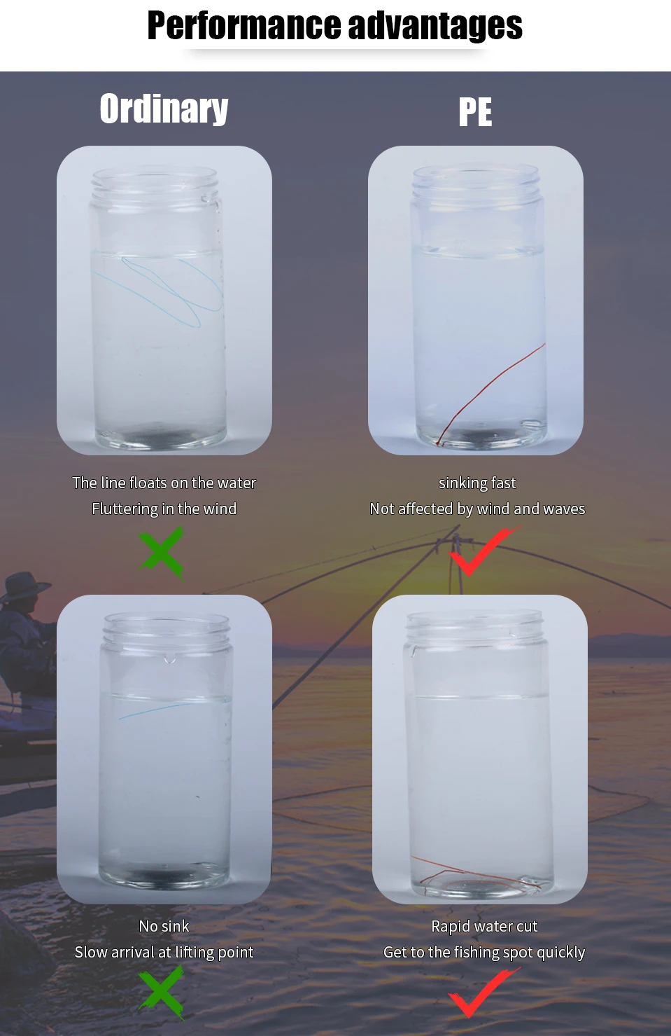 La baja elasticidad y la linealidad de hundimiento suave hacen que la línea tenga una alta sensibilidad para transmitir señales de pesca de manera más rápida y precisa.