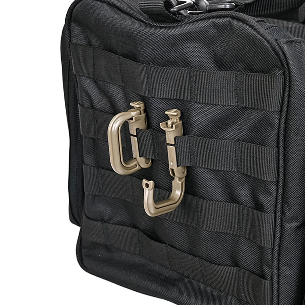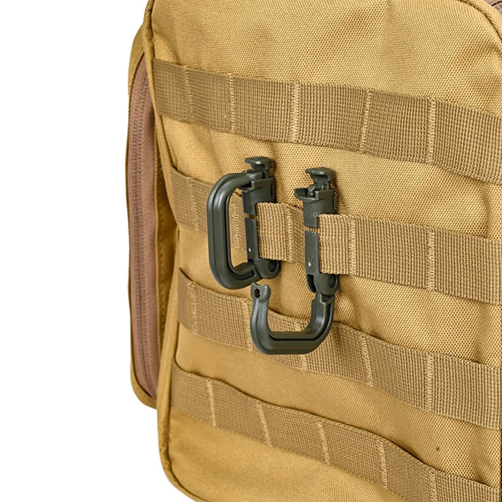 (1) Utilizado en aproximadamente 1 pulgada de ancho de la cinta, puede abrocharse en el chaleco táctico, como mochilas, bolsos y otros sistemas y equipos MOLLE, como una cuerda corta, herramientas y accesorios de piezas auxiliares.