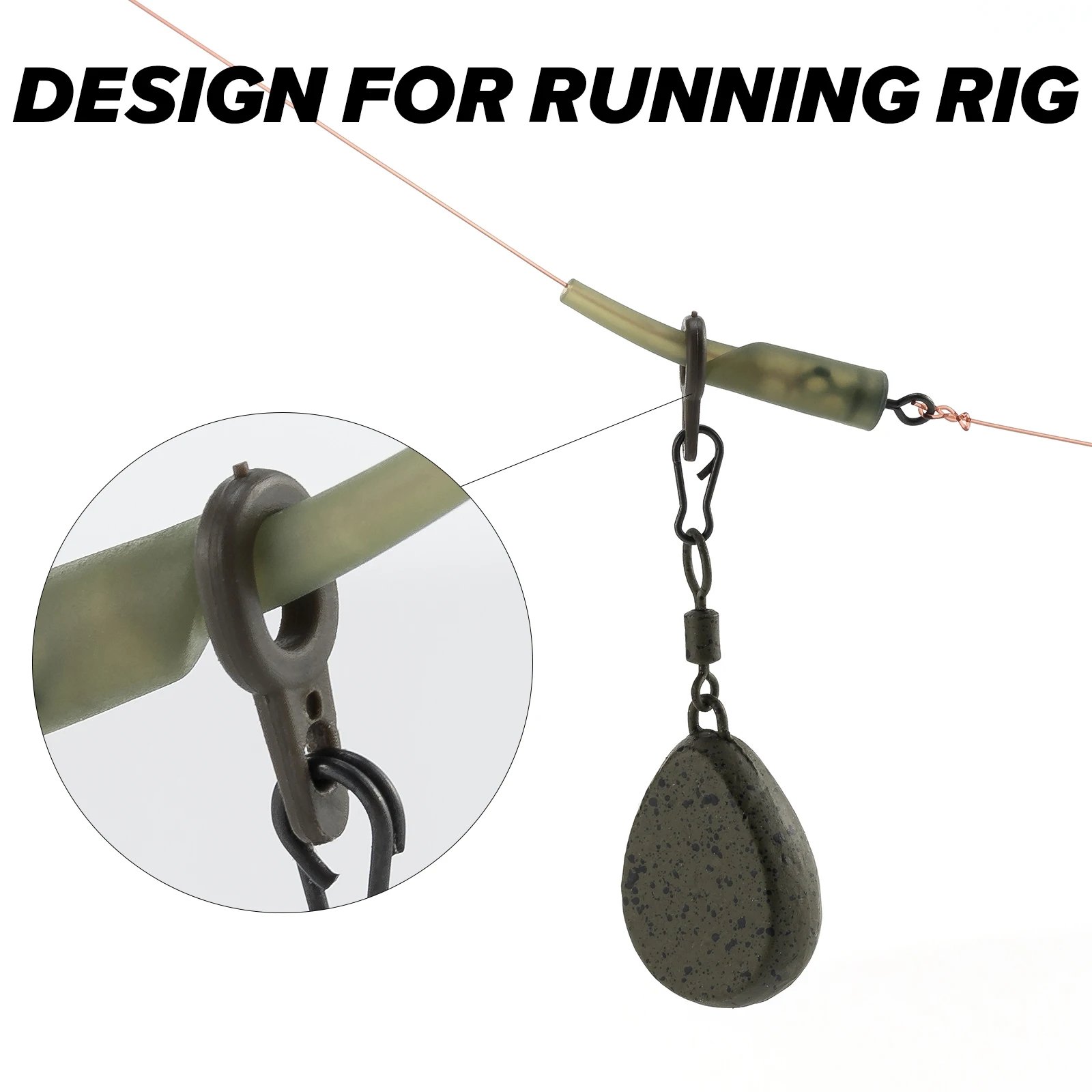 Anillo de correr para pesca de carpa, enganches de plomo de peso fácil de deslizar, 30 piezas, aparejo de correr para pesca de carpa, Conector de aparejo de helicóptero de Lucio, agua dulce