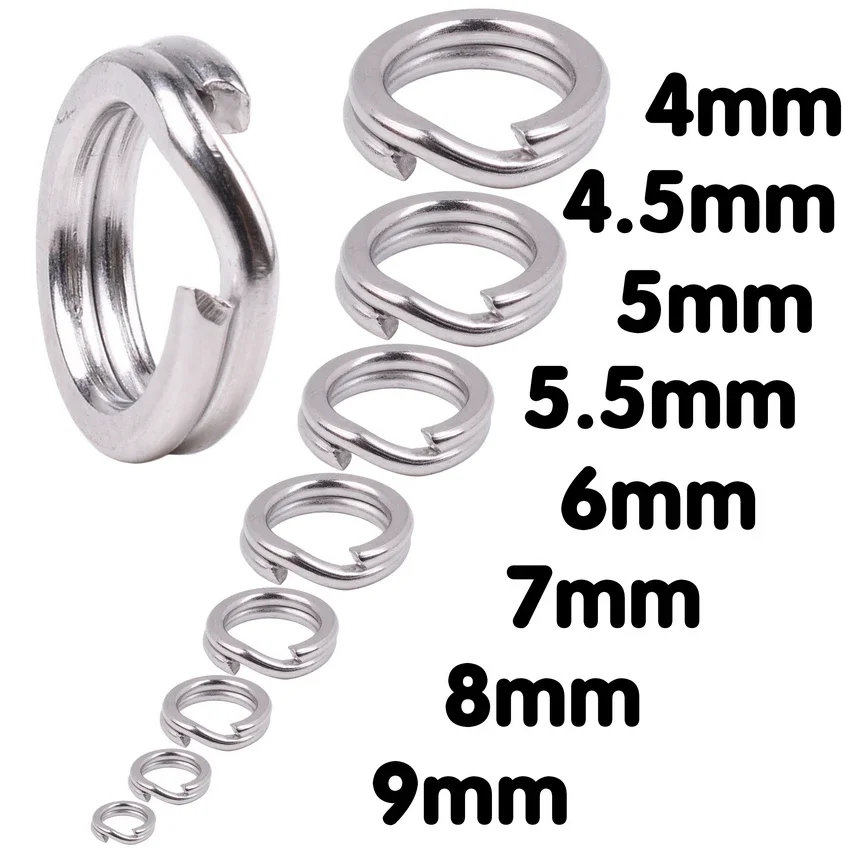 Anillo dividido de pesca de 50 o 100 piezas para cebo duro, acero inoxidable plateado, doble bucle dividido, herramientas de pesca de carpa abierta, aparejos de pesca