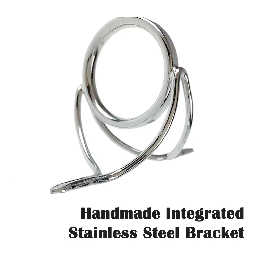 1.Diseño de anillo de guías integradas: guías integradas de acero inoxidable, con fuerte resistencia a la corrosión, resistencia a la tracción y resistencia a la fatiga.La superficie lisa de los anillos reducirá en gran medida la posibilidad de dañar el hilo de pescar.