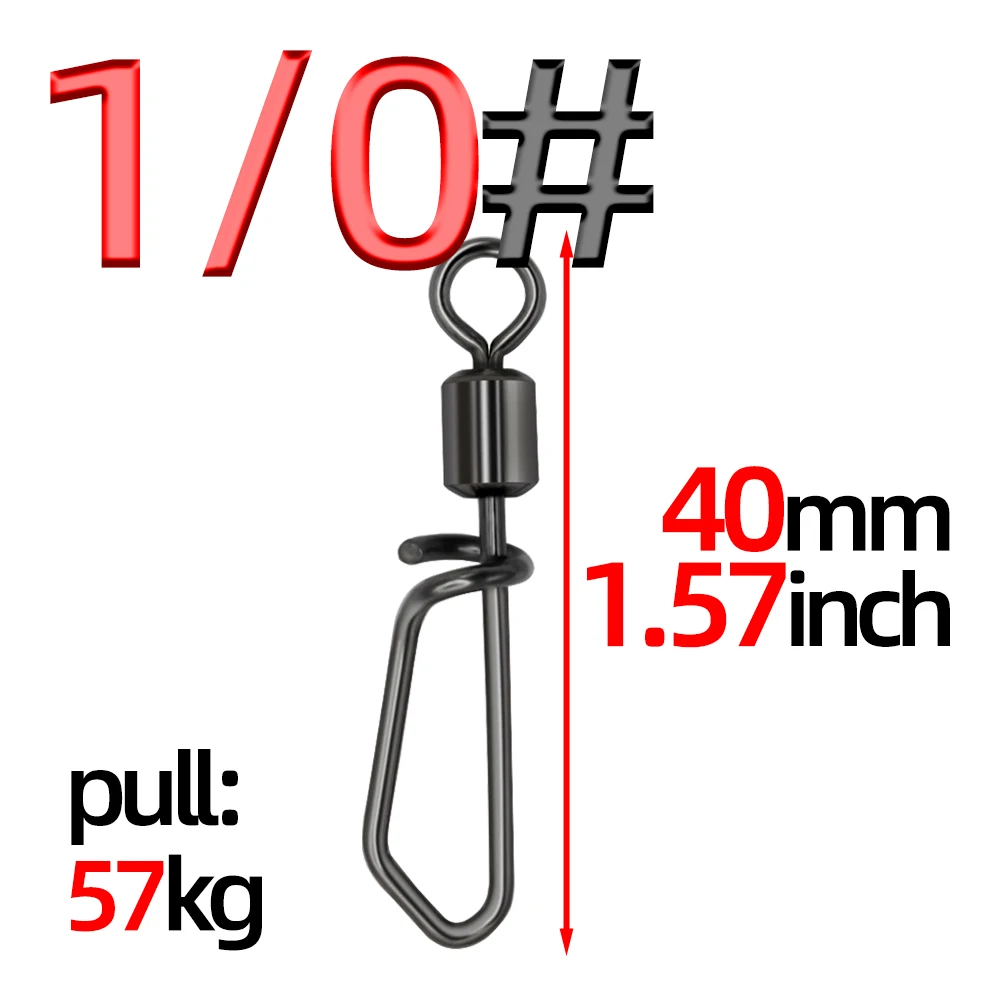 1/0 #: longitud 40mm/1,57 pulgadas, diámetro del cable 1,18mm, fuerza de tracción 57kg