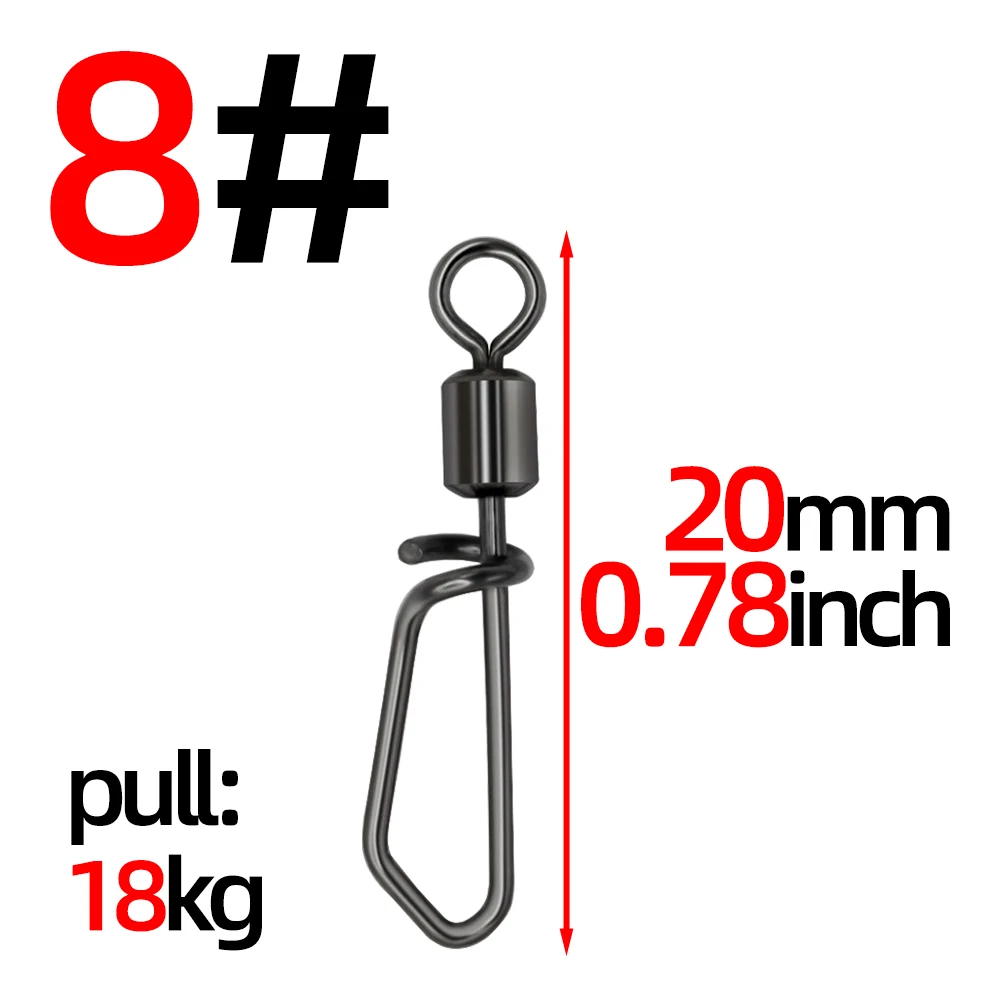 8#: Longitud 20 mm/0,78 pulgadas, diámetro del cable 0,67 mm, fuerza de tracción 18 kg