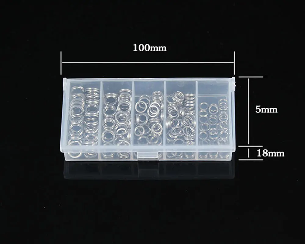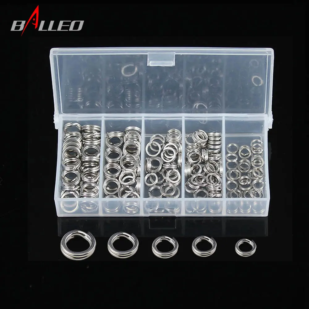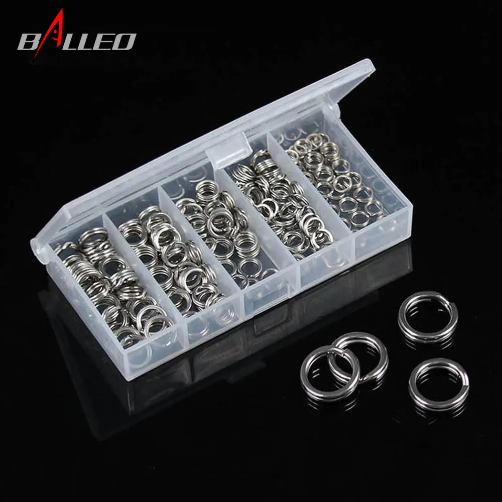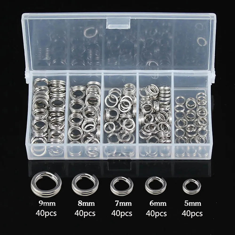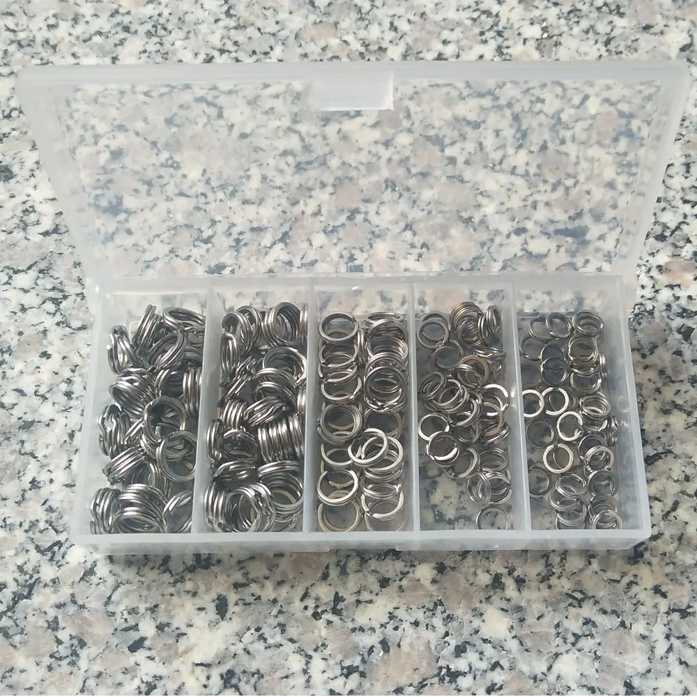 200 unids/set pesca anillo dividido de acero inoxidable anillo sólido conector de doble anillo con caja accesorios de pesca mejorados
