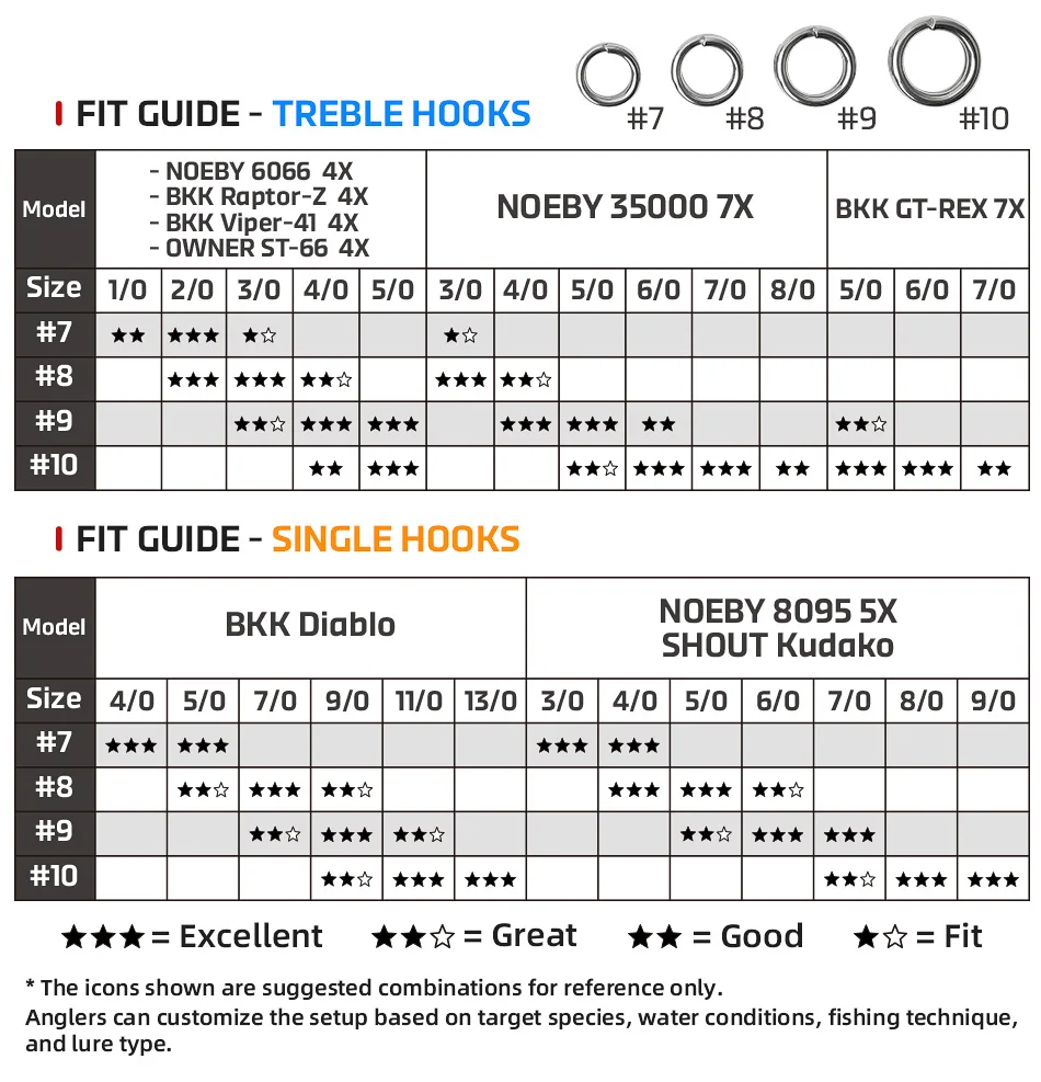 Anillos divididos de acero inoxidable con hilo ultra pesado NOEBY # 7 # 8 # 9 # 10 Anillos divididos de aparejos de pesca Bluefin Tuna GT de gran juego en bruto