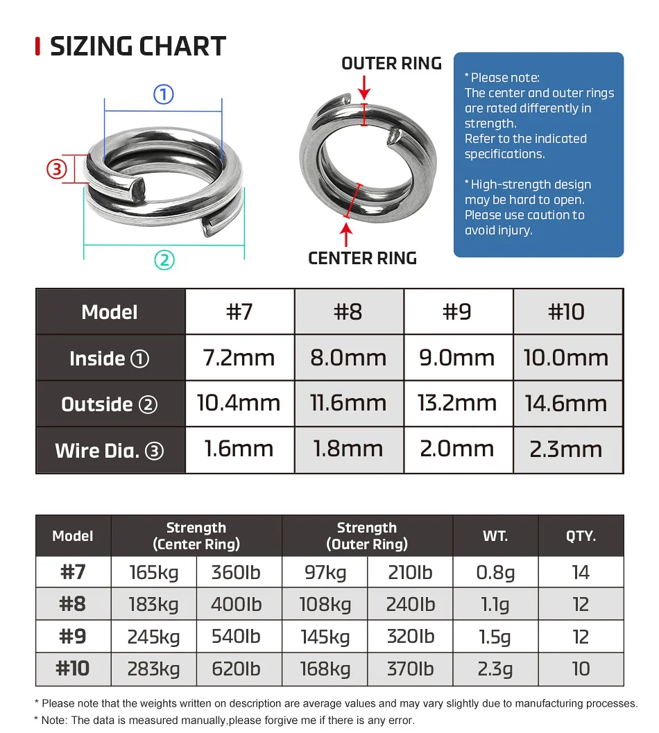 Anillos divididos de acero inoxidable con potencia de alambre ultra pesado NOEBY # 7 # 8 # 9 # 10 anillos divididos para aparejos de pesca Offshore Big Game Bluefin Tuna GT