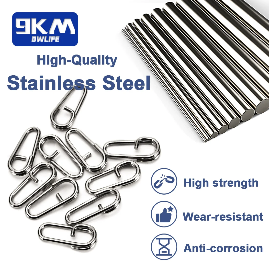 Anillos divididos ovalados de acero inoxidable resistentes a la corrosión: están hechos de acero inoxidable de alta calidad, el cuerpo está hecho de acero inoxidable de alta resistencia, el niquelado general es resistente a la corrosión. Se asegurará bajo alta presión de la línea o señuelo, resistencia a la corrosión, resistencia al óxido, resistencia a la abrasión, alta resistencia y durabilidad. Ya sea que ate señuelos o cebo en él, puede proporcionar una conexión muy estable.