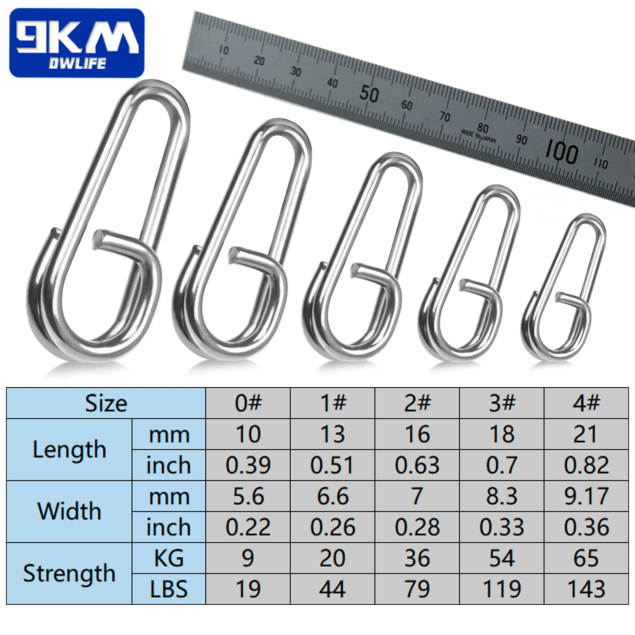 Varios tamaños para su pesca: proporcionamos varios tamaños para su elección. Y la fuerza de estos sería diferente de 9kg a 65kg. La variedad de tamaños está disponible, las longitudes son de 10mm a 21mm. Estos tamaños satisfacen sus necesidades para diferentes usos. Confirme el tamaño adecuado del anillo dividido de pesca antes de comprarlo.