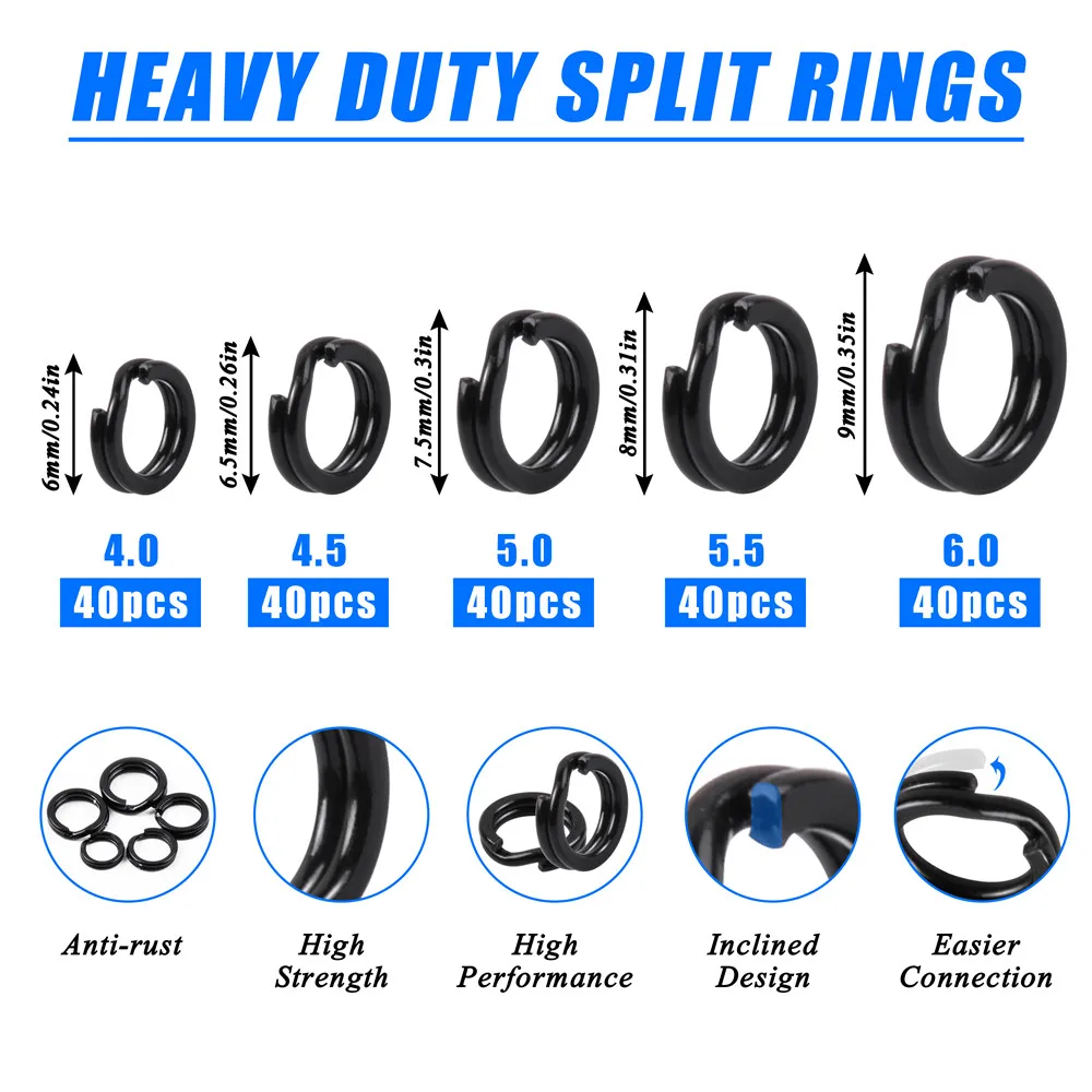 200 Uds anillos divididos de pesca de acero inoxidable O anillos conector de pesca negro/plata giratorios fuertes accesorios de señuelo a presión