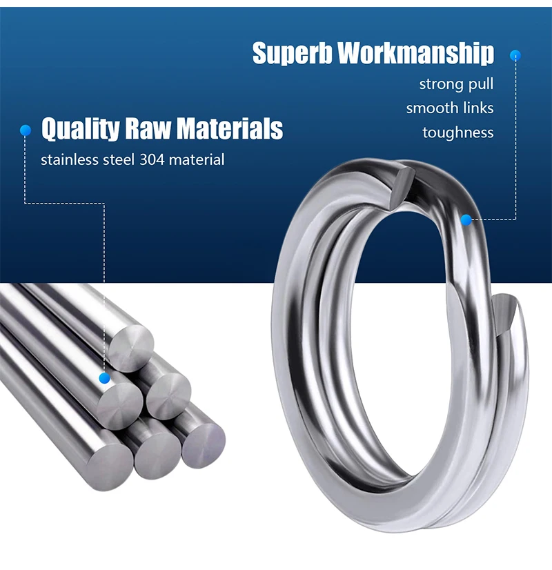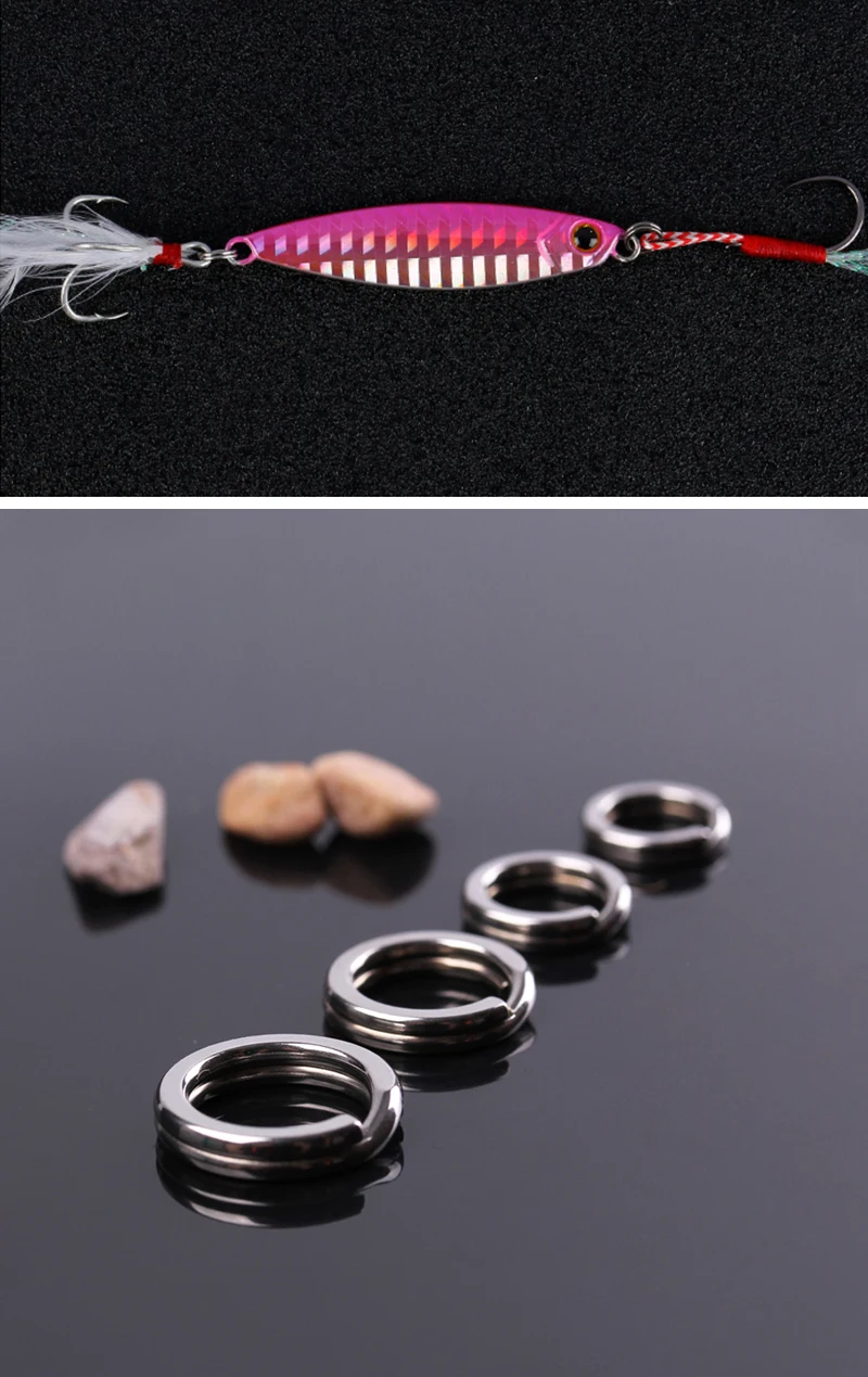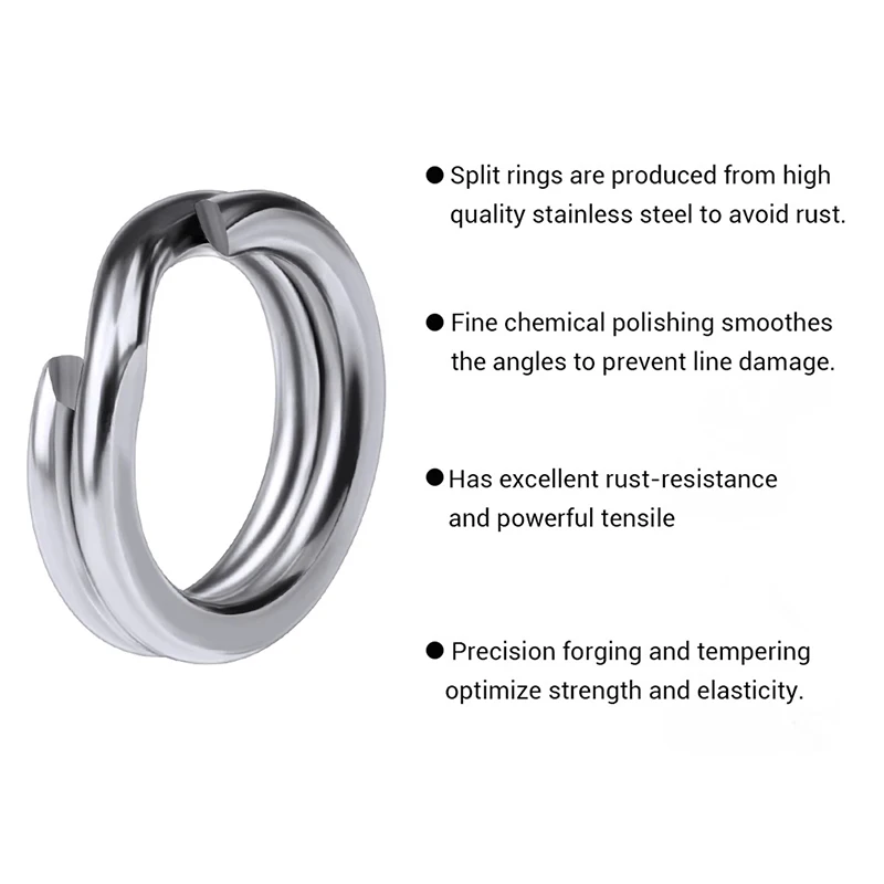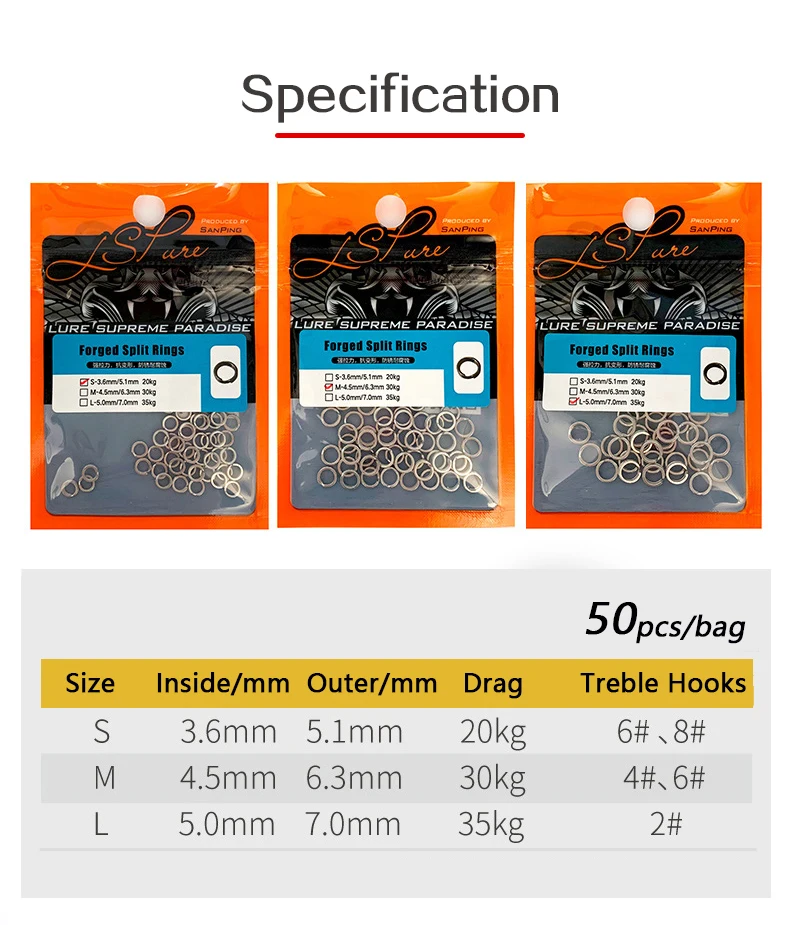 Anillos divididos de pesca LSP, 50 unidades por paquete, conector de doble bucle a presión de acero inoxidable, accesorios de pesca giratorios forjados de alta resistencia