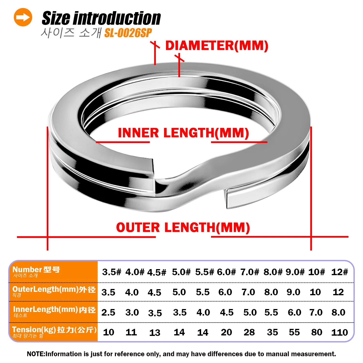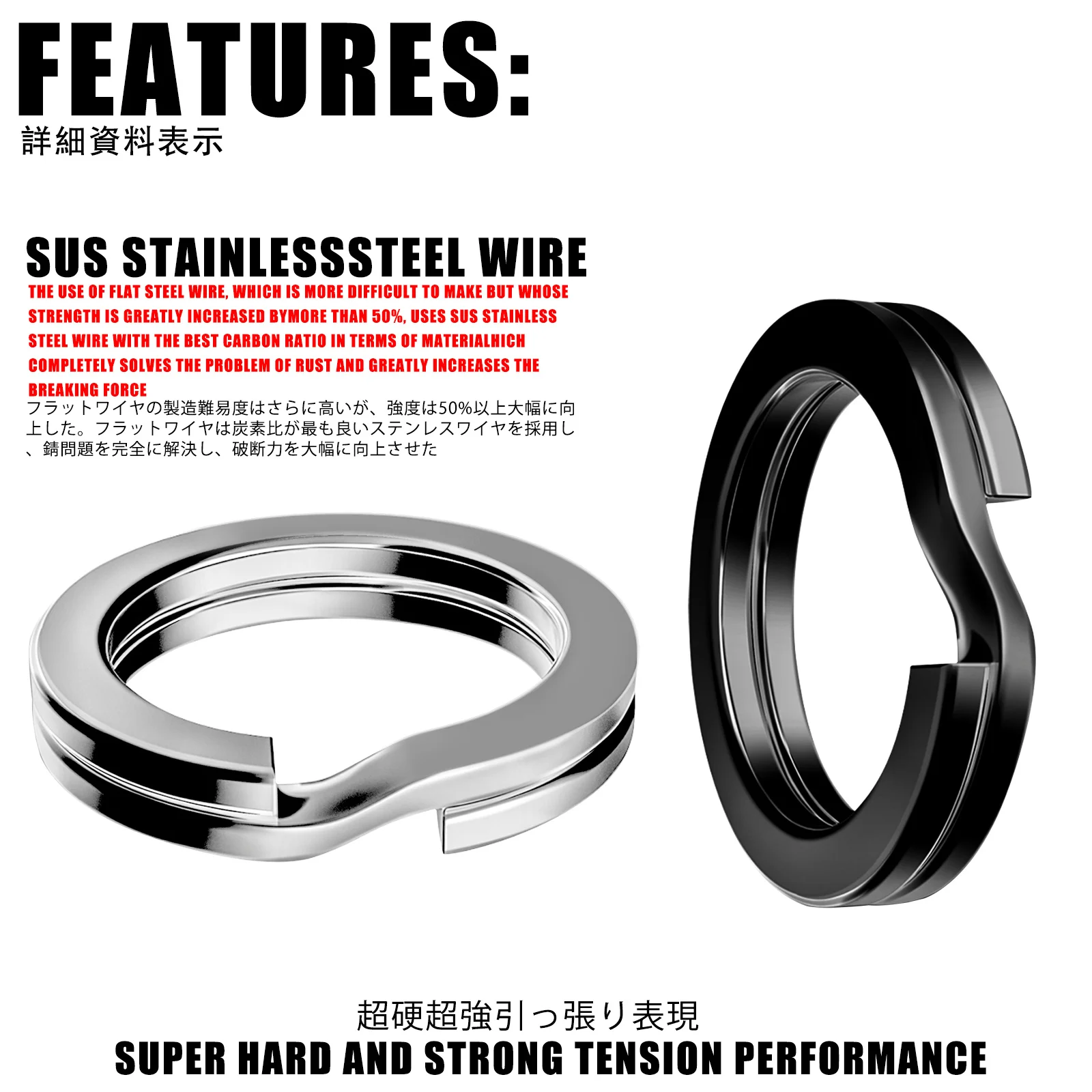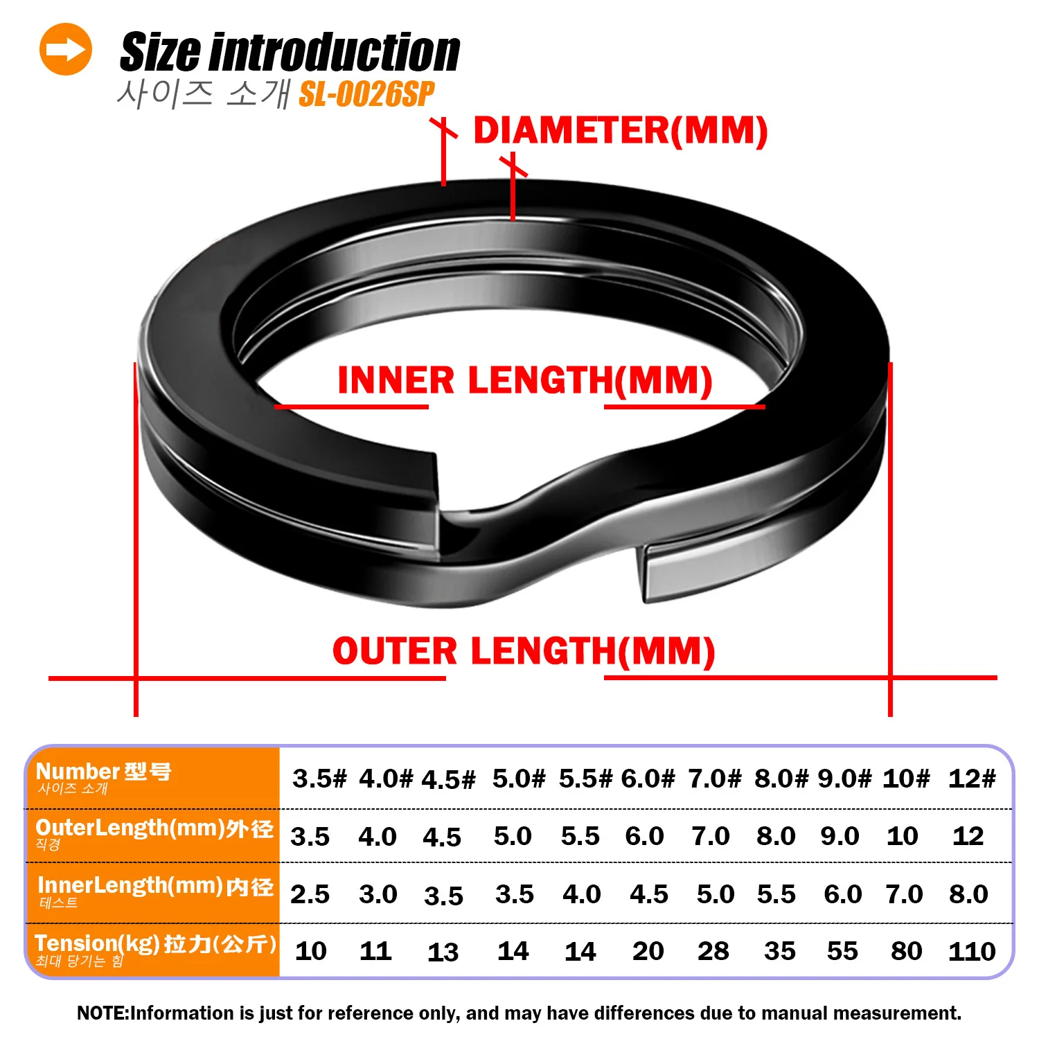 Anillos divididos de Pesca de alto refuerzo, acero inoxidable 3,5-12MM, plateado/Negro, doble círculo, redondo, accesorios para Pesca a presión, señuelo a presión