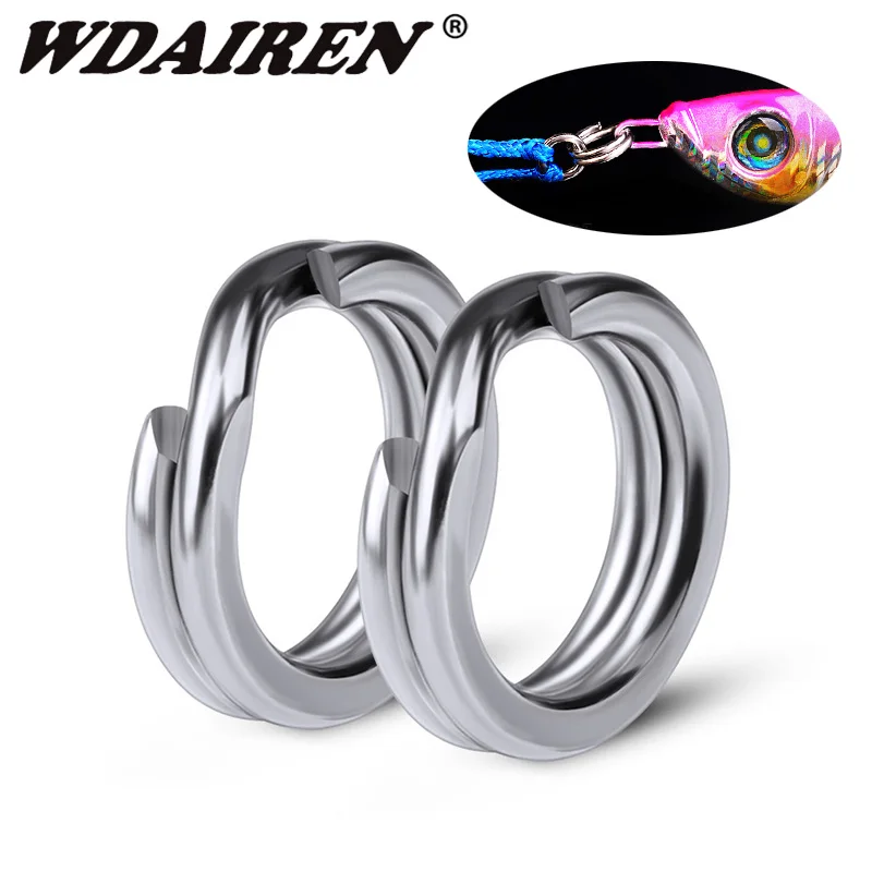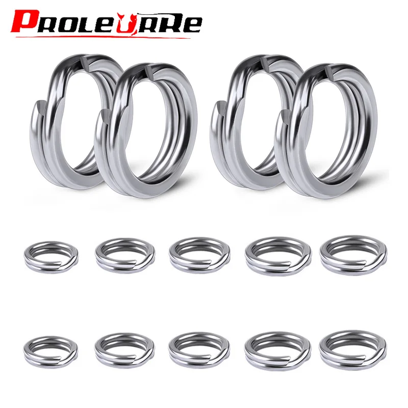 Anillos de pesca de acero inoxidable, accesorios de pesca de alta calidad, anillo sólido reforzado, señuelo, 100 unidades