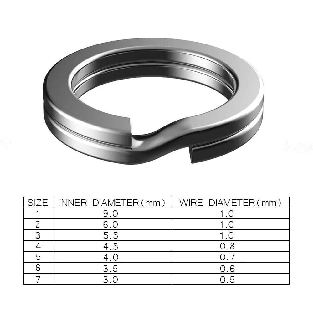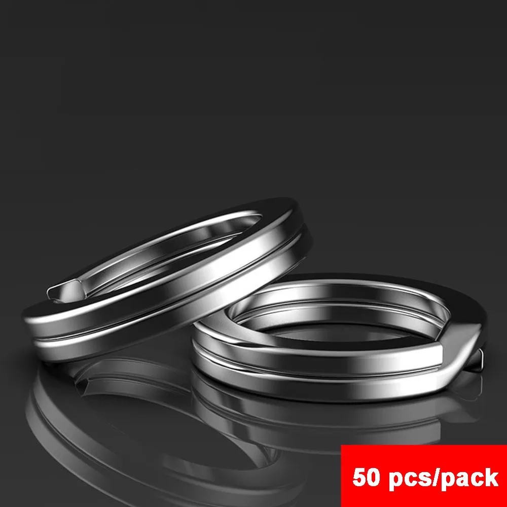 Anillos de pesca divididos de acero inoxidable, accesorios de pesca de alta calidad, anillo sólido reforzado, señuelo, 50 unidades