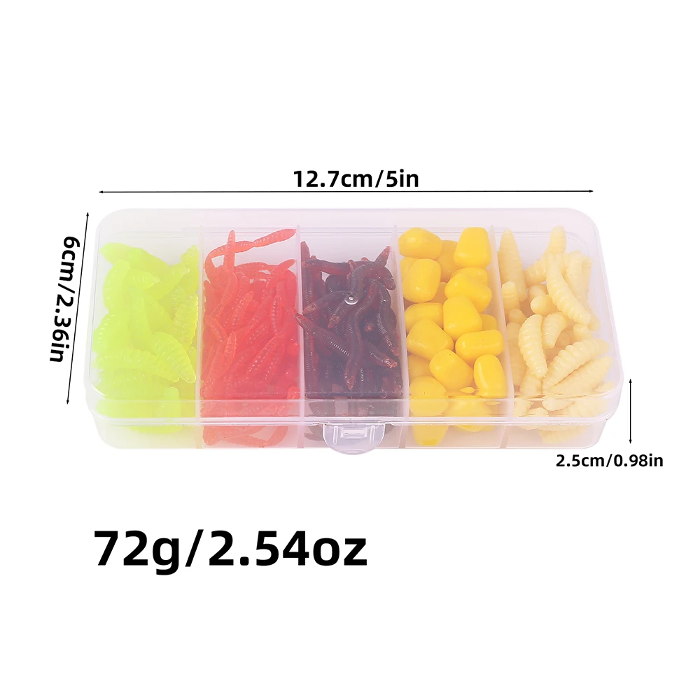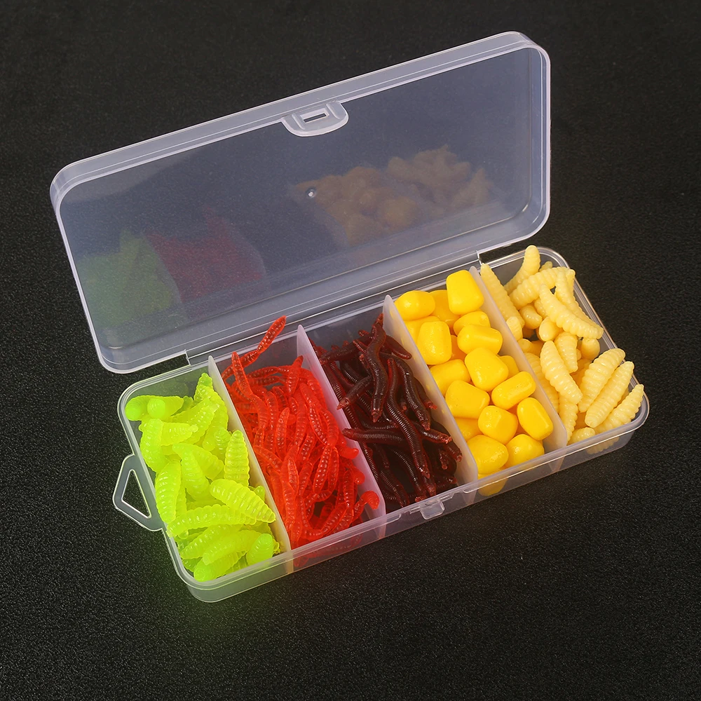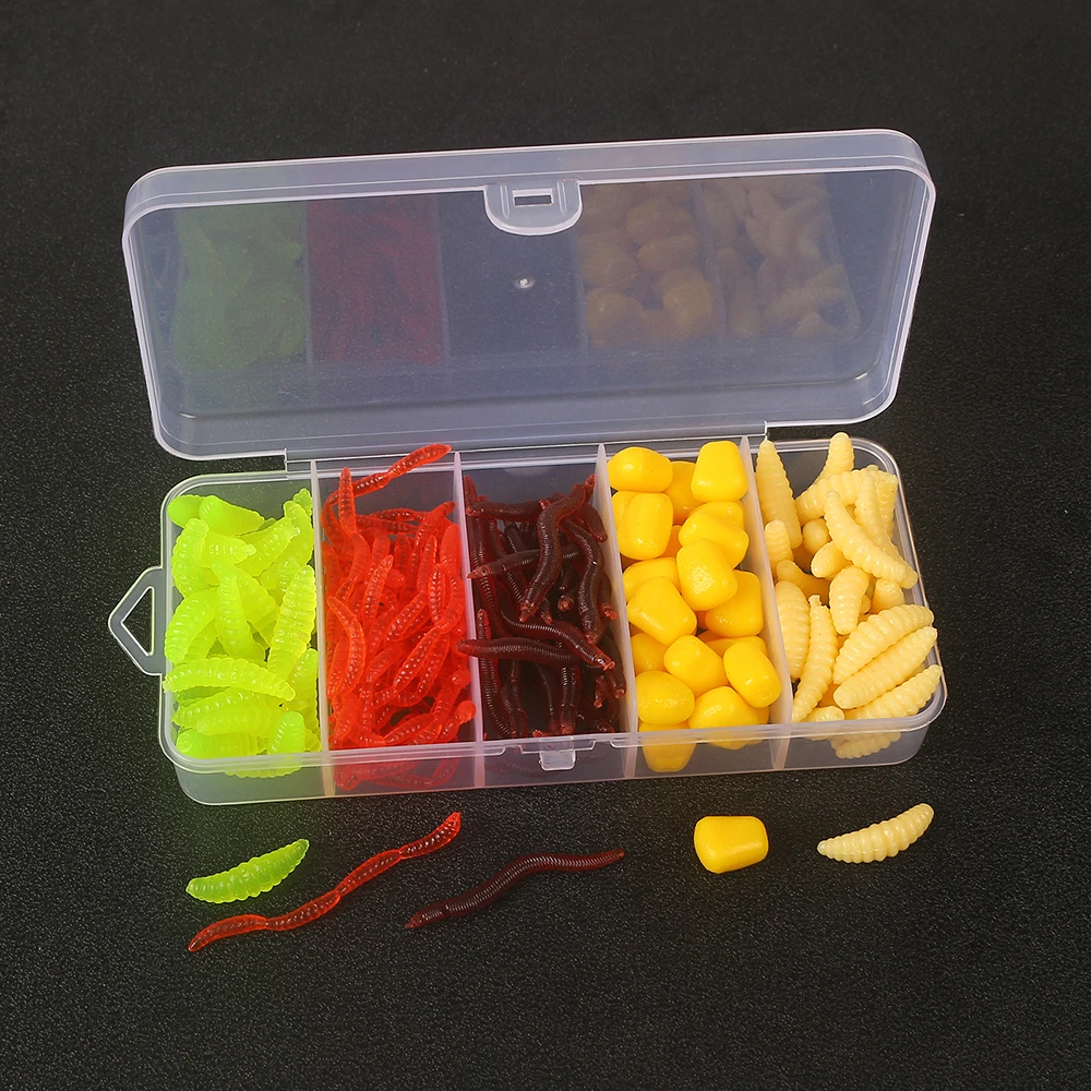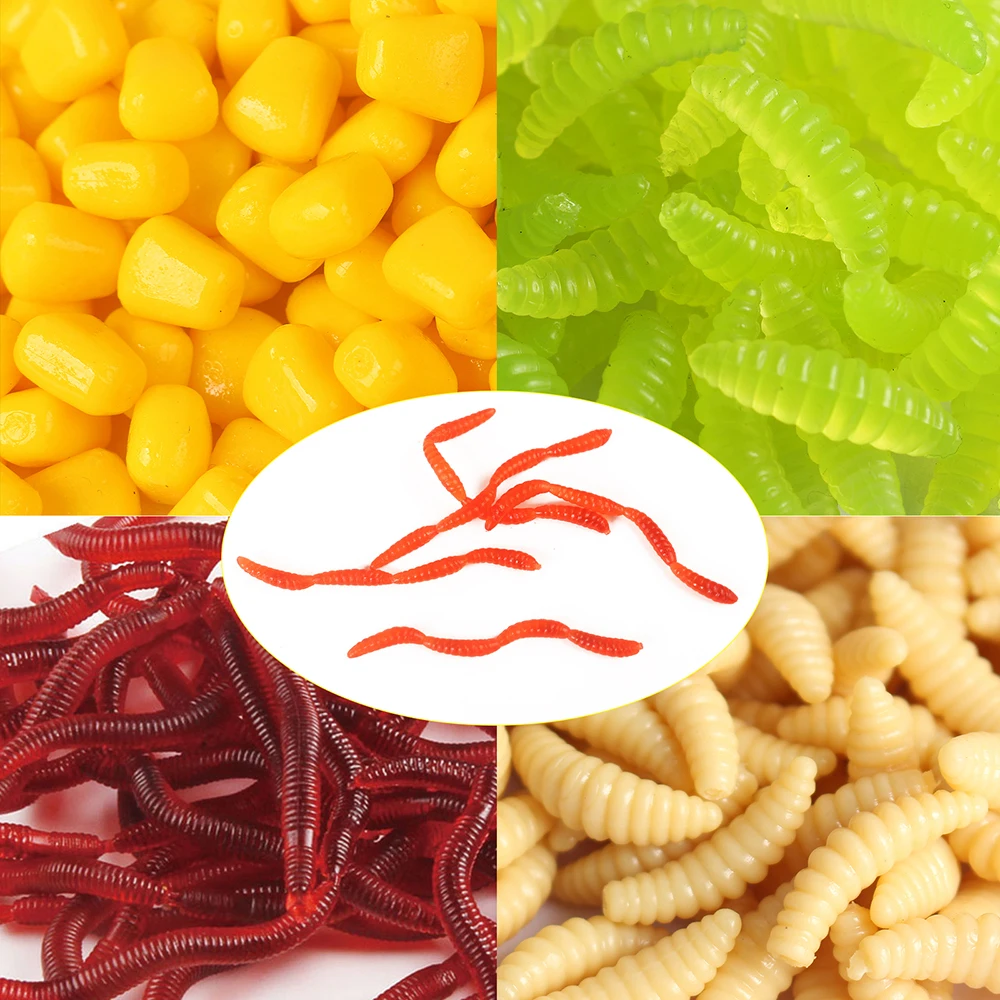 Anmuka 160 Uds juego de señuelos para perca, gusano de pan, lombriz de tierra, núcleo de maíz, gusano rojo, señuelo artificial, señuelo suave y cabeza de plantilla de señuelo realista h