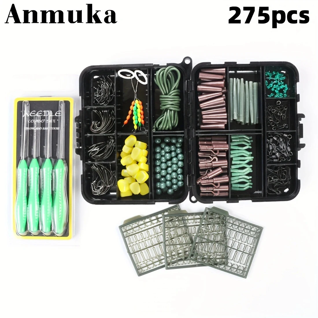 Anmuka-caja de accesorios para piezas, almacenamiento de pesca europeo, Juego de pesca de carpa, gancho de parada, anillo giratorio de frijol, suministros de equipo de pesca, 275