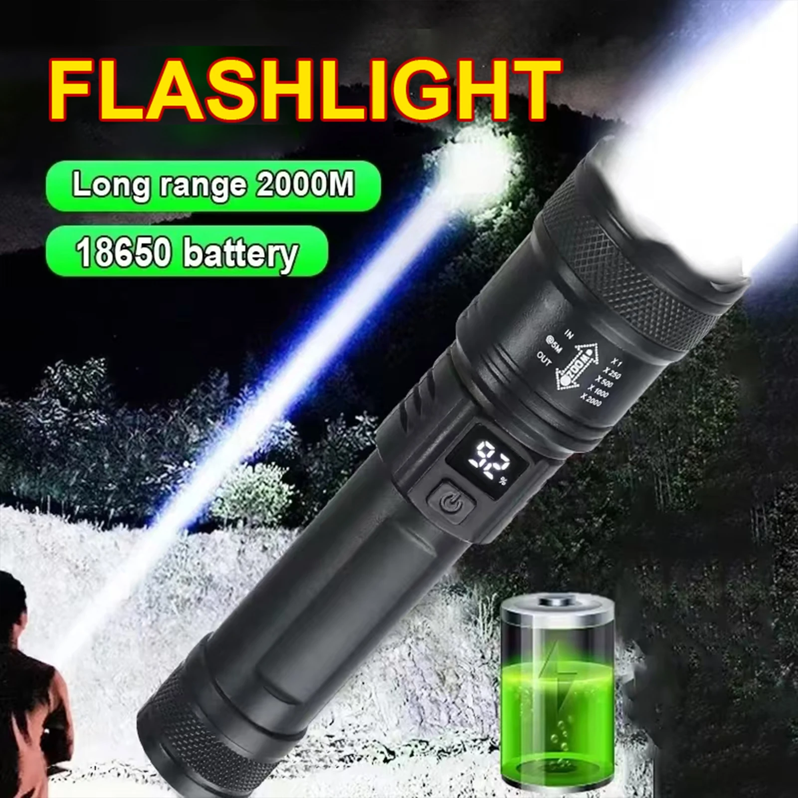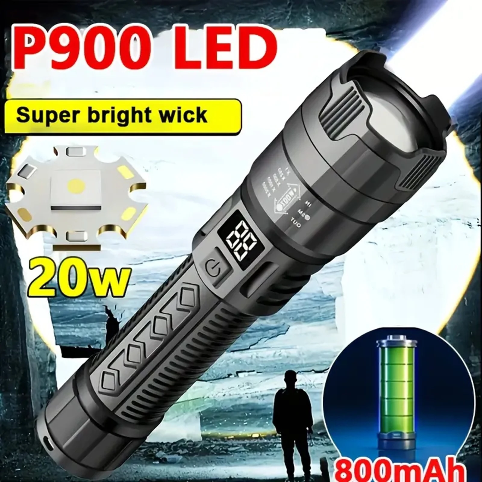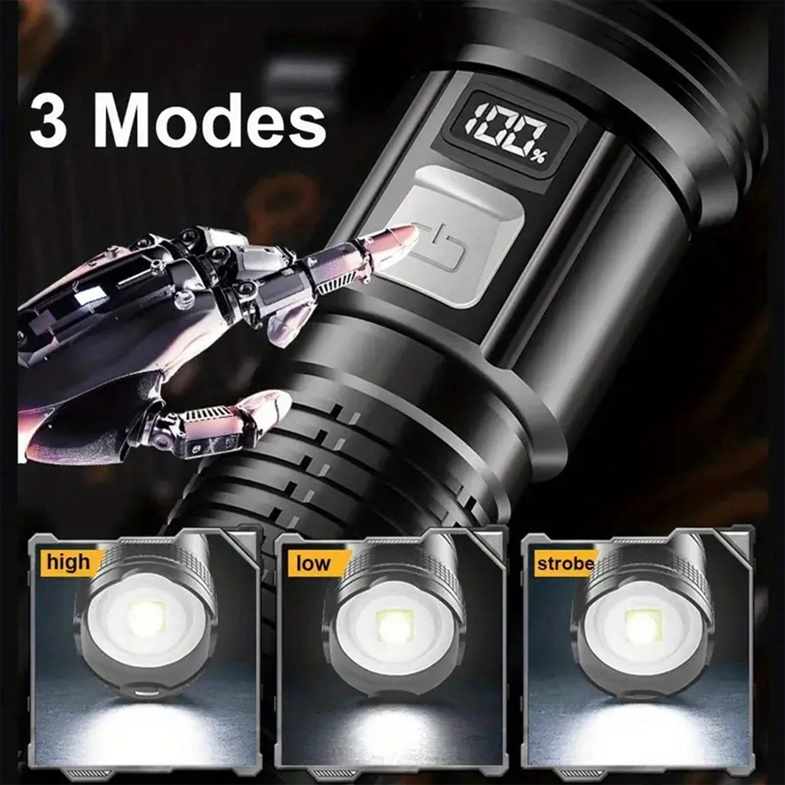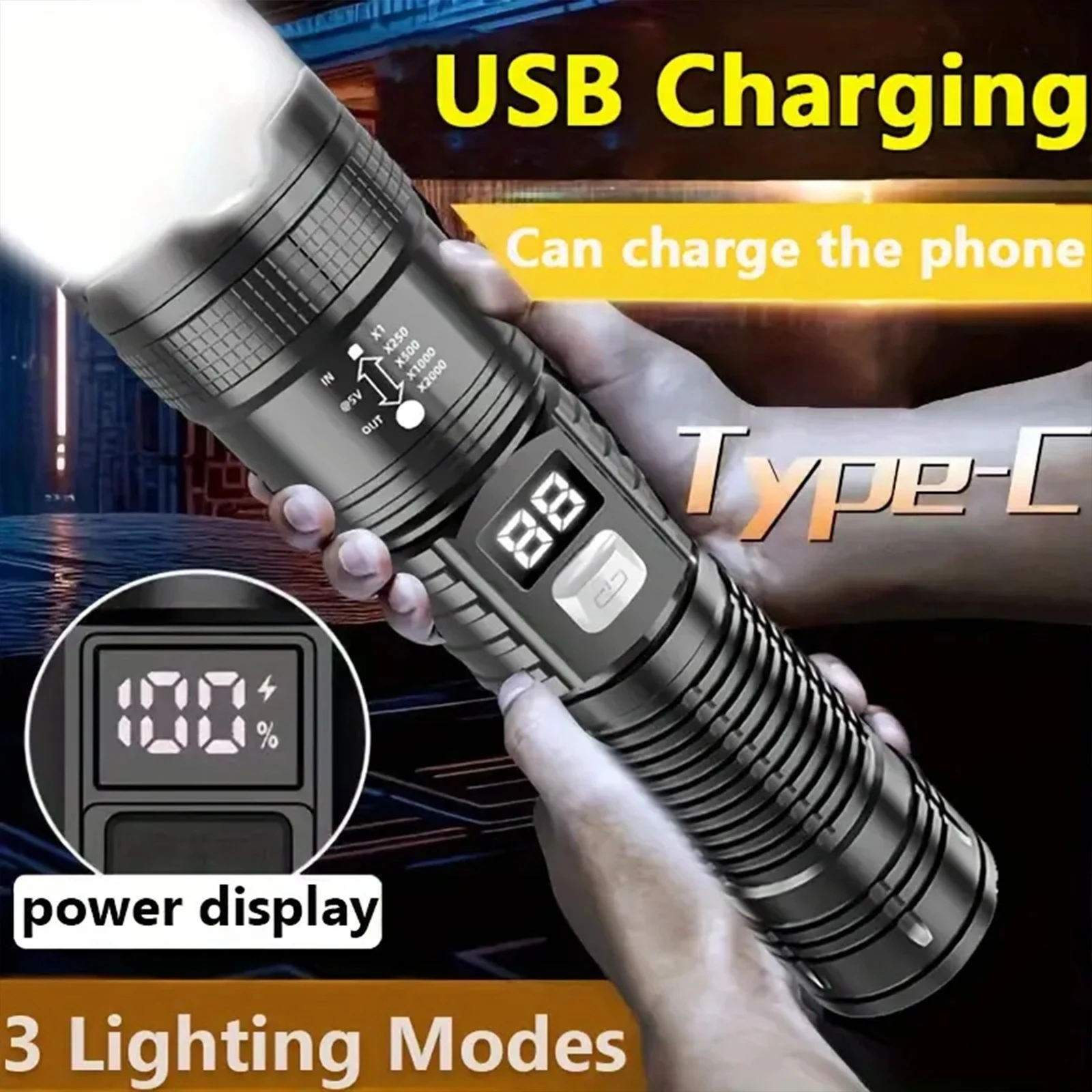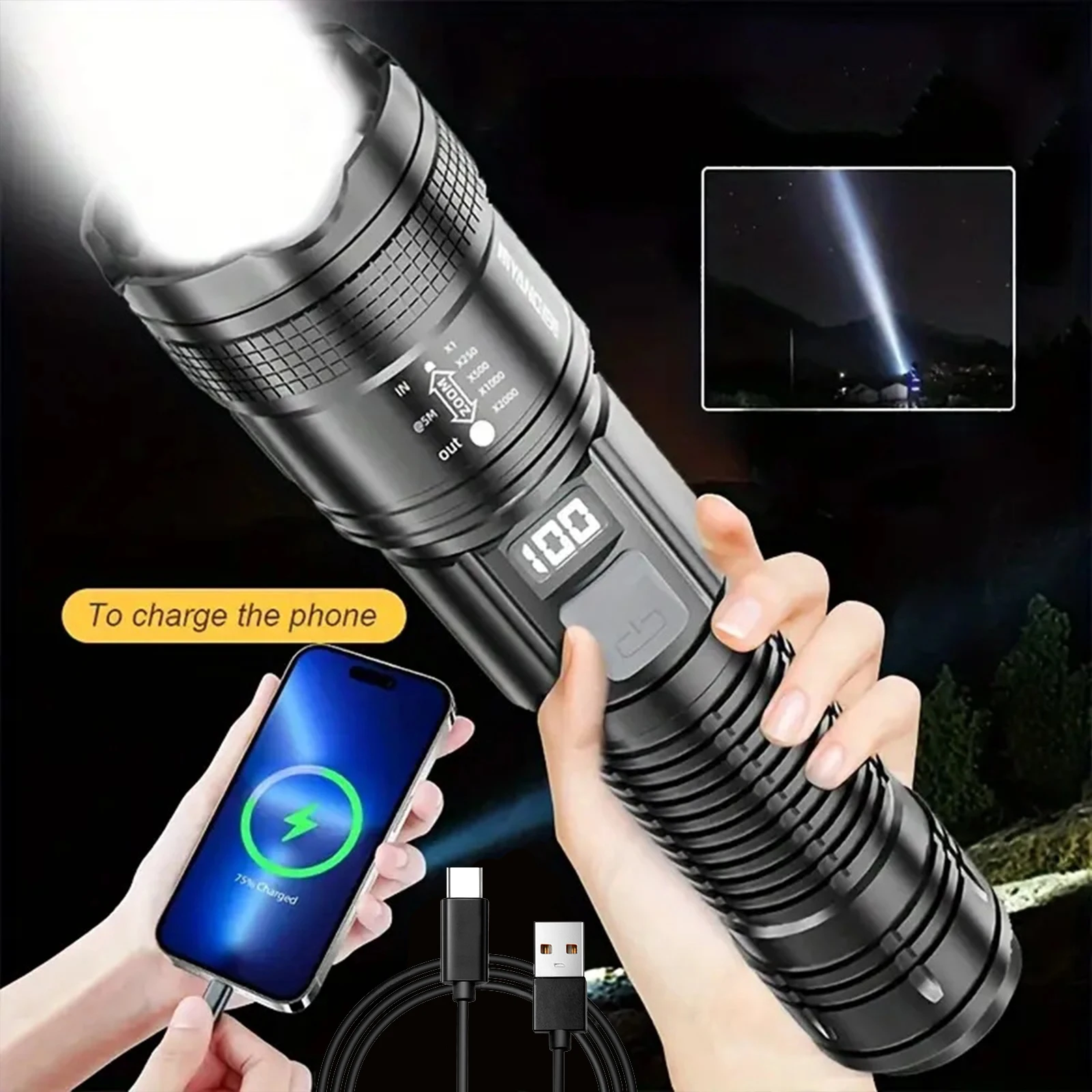 🔦[12 horas de uso] Esta linterna recargable de 990000 lúmenes suele tardar entre 4 y 6 horas en cargarse por completo.Se puede usar durante 8 a 12 horas durante mucho tiempo después de una sola carga, ya no tendrá que preocuparse por quedarse sin energía y cargarlo con frecuencia, y aún se puede usar normalmente después de 100.000 cargas.