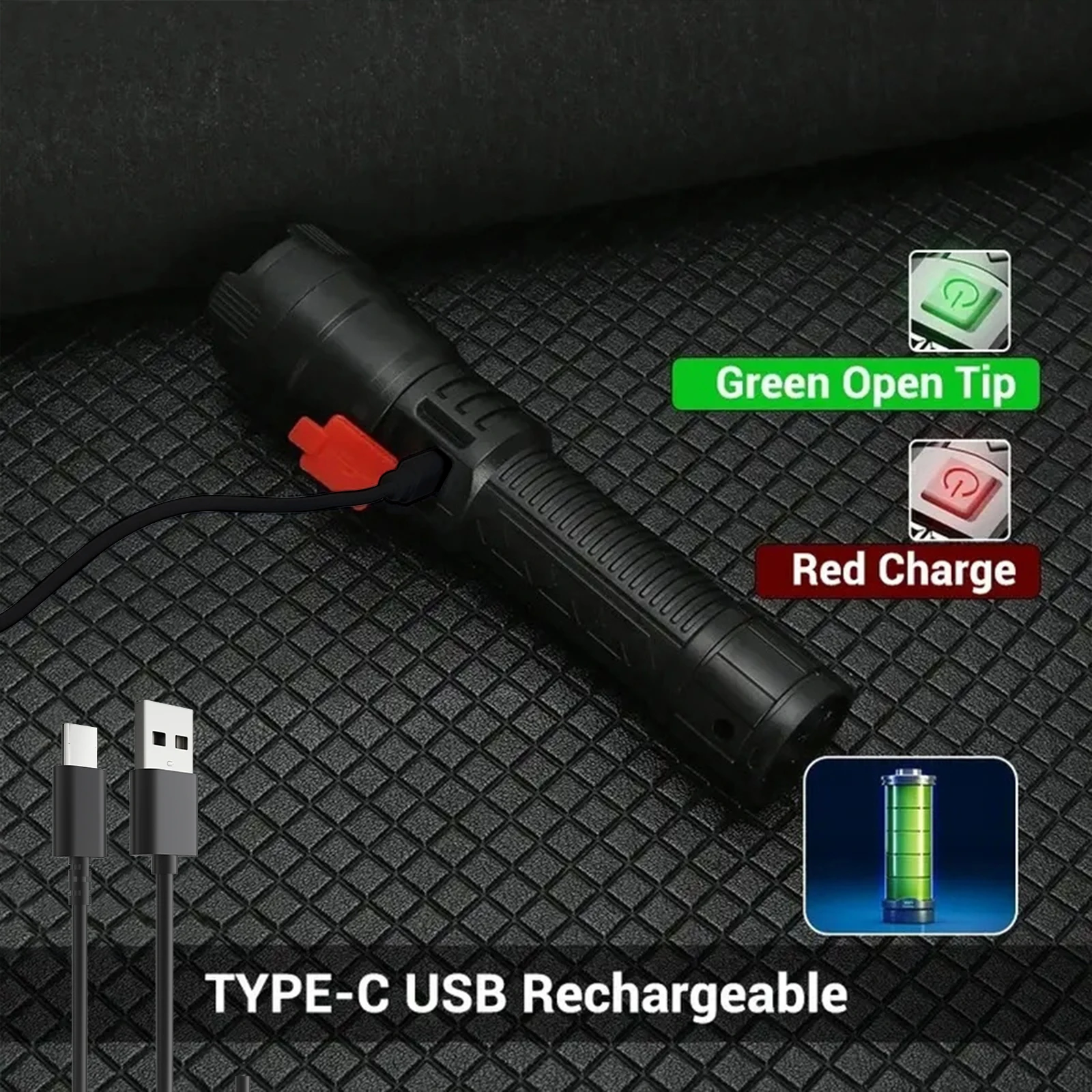 🔦[Recargable y pantalla de energía] Esta linterna recargable tiene un puerto de entrada Mrico incorporado, que se puede conectar a un banco de energía, computadora, cargador de automóvil, cargador de pared, etc.para cargar cómodamente la linterna LED.Además, esta brillante linterna tiene una luz indicadora en el interruptor para saber cuándo cargar.