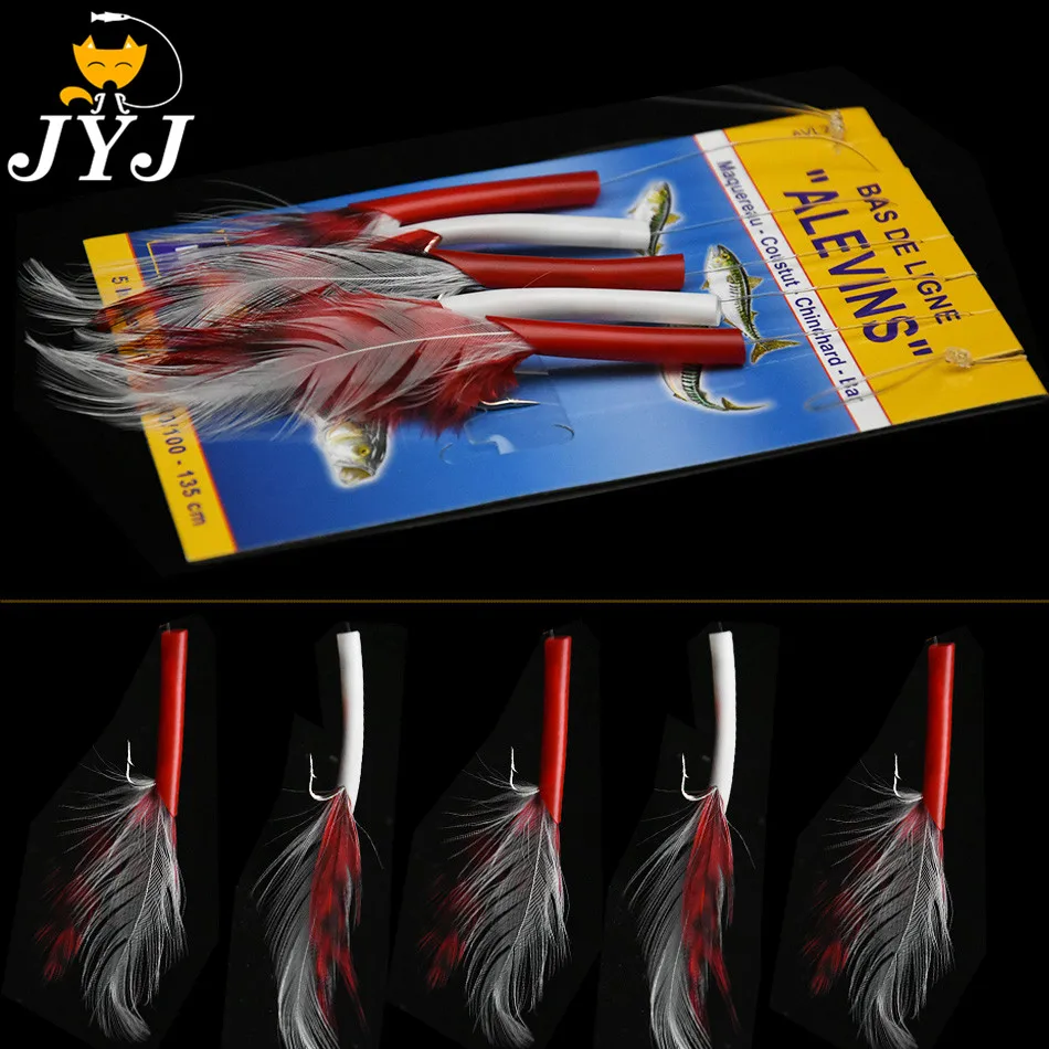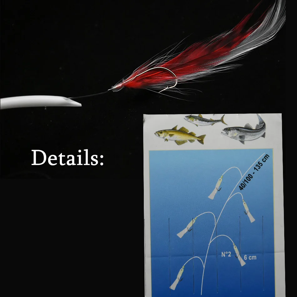 Anzuelo de 2 bolsas de tamaño No.2, aparejo de señuelo de arenque, anzuelos sabiki, aparejo de señuelo, cebo con ganchos de plumas