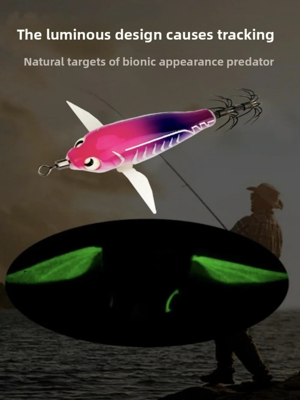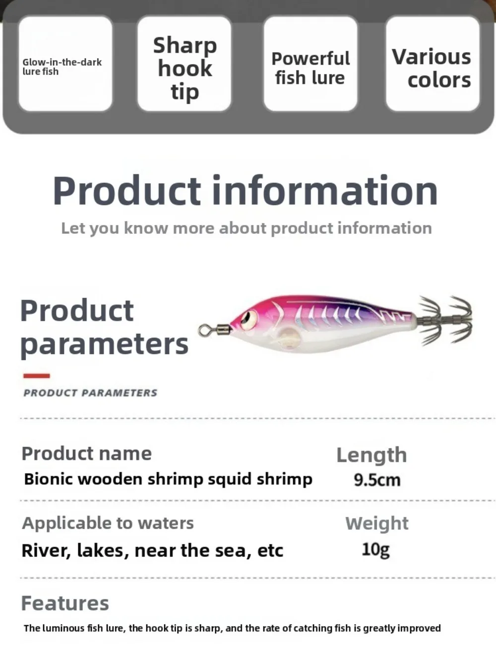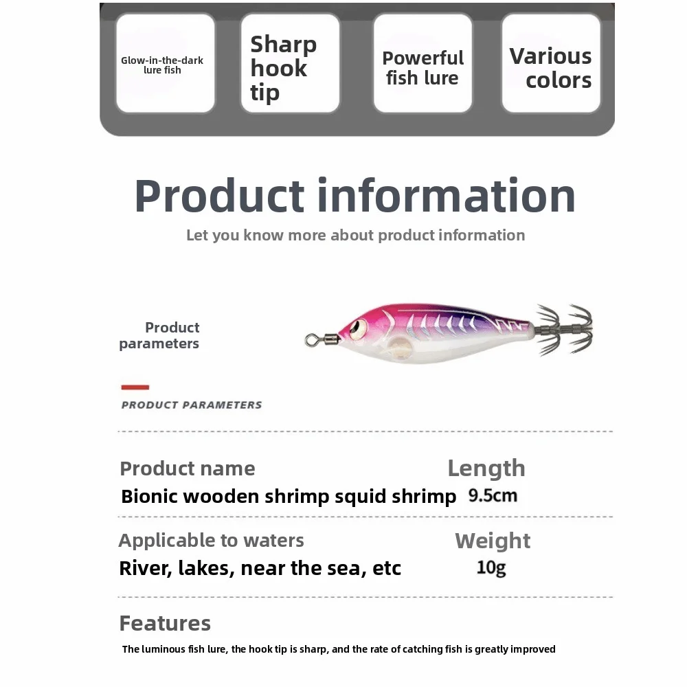 9.5cm 10g Cuttlefish Egi Squid Lure Squid Jig Wood Shrimp Lure Glow Horizontal Shrimp Squid Hook ABS Sea Fishing Hard Bait