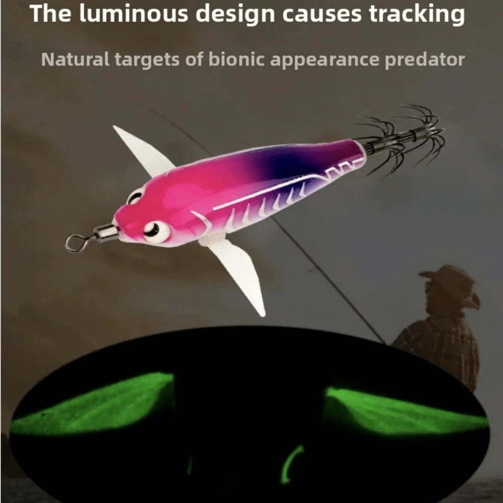 9.5cm 10g Cuttlefish Egi Squid Lure Squid Jig Wood Shrimp Lure Glow Horizontal Shrimp Squid Hook ABS Sea Fishing Hard Bait