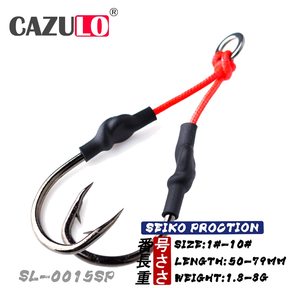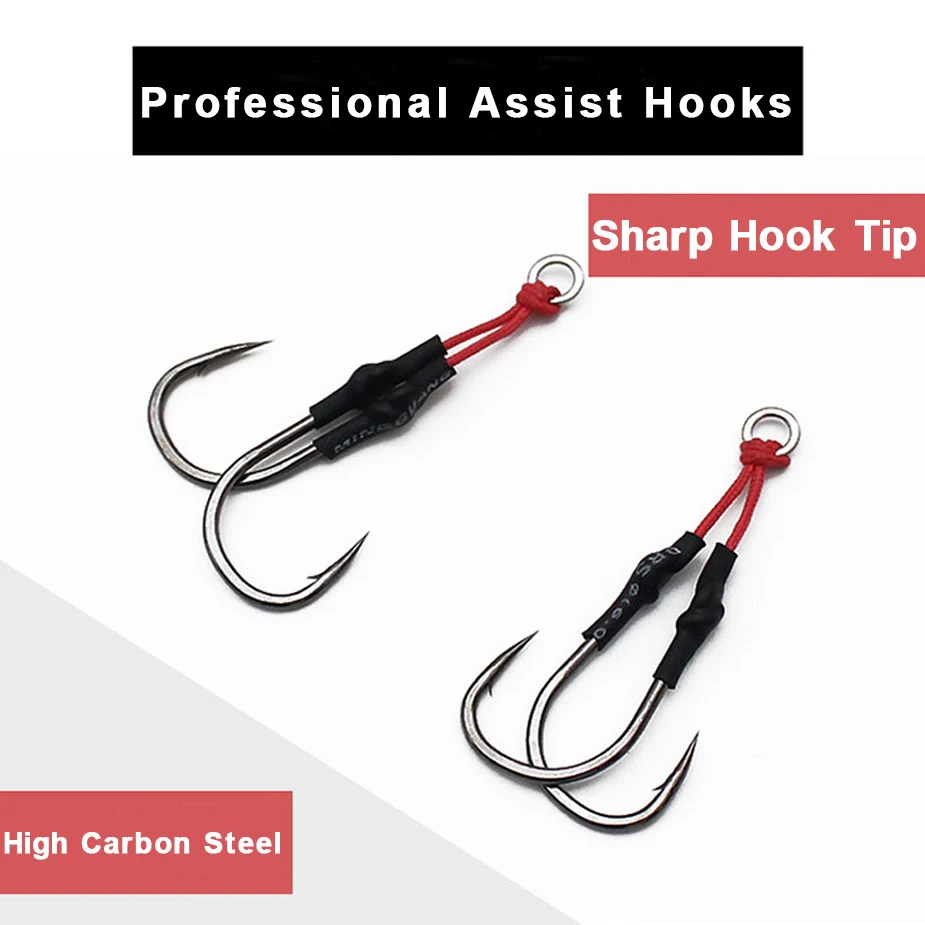 Accesorios de pesca Anzuelo Jigging Assist Hook Acero de alto carbono Doble Jig Fish Hook PE Line Tackle Angeln Zubehor Trolling Tools