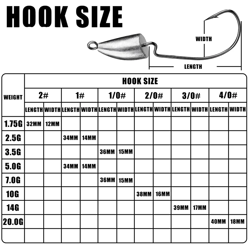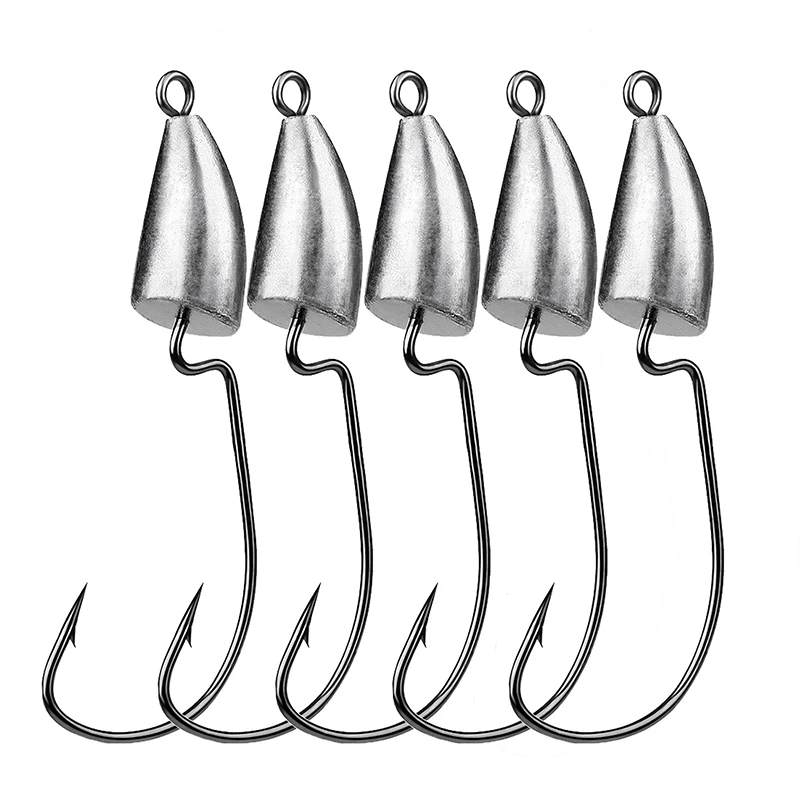 Anzuelo de acero con alto contenido de carbono, anzuelo de cabeza plomada, gusano Offset, señuelo de manivela, 5 piezas, 1,75g, 2,5g, 3,5g, 5g, 7g, 10g, 14g